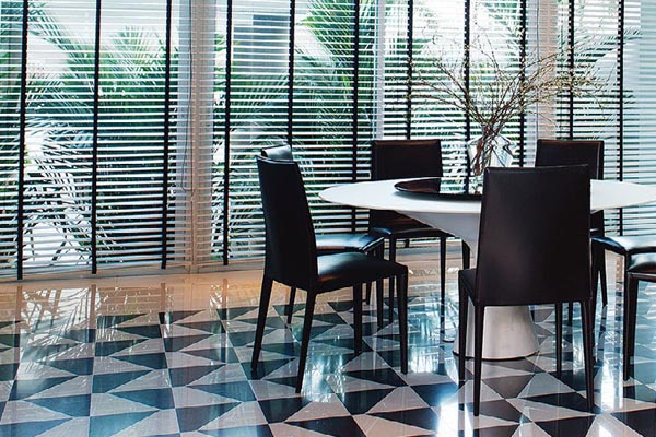 กระเบื้องลายจีโอเมทรี่สีขาว-ดำ ก็ช่วยส่งเสริมให้พื้นห้องดูโดดเด่นได้เป็นอย่างดี