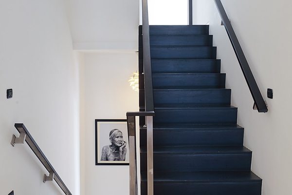 ทาสีบันไดด้วยสีดำทำให้พื้นที่เรียบๆดูโดดเด่นขึ้นมาในทันใด