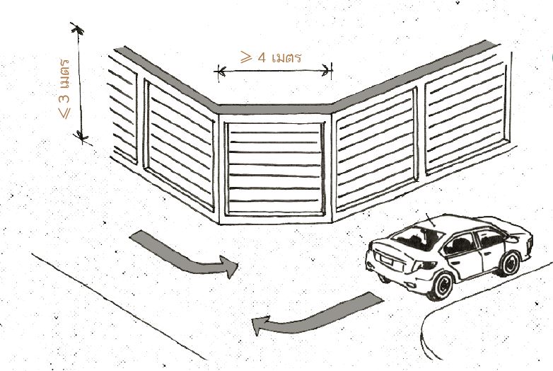 กฎหมายกำหนดให้รั้วบ้านสูงได้ไม่เกิน 3 เมตร หากรั้วนั้นตั้งอยู่หัวมุมถนนสาธารณะต้องปาดมุมรั้วให้มีระยะไม่น้อยกว่า 4 เมตรเพื่อให้รถเลี้ยวได้สะดวก