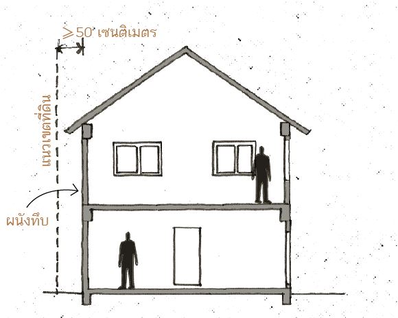 - หากผนังที่ชิดเขตที่ดินเป็นผนังทึบ สามารถสร้างให้มีระยะห่างจากเขตที่ดินได้ไม่น้อยกว่า 50 เซนติเมตร
