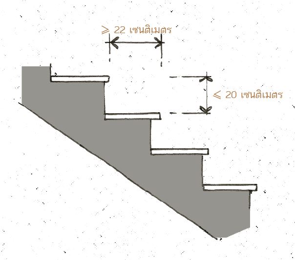 - ลูกตั้งห้ามสูงเกิน 20 เซนติเมตร และลูกนอนห้ามน้อยกว่า 22 เซนติเมตร