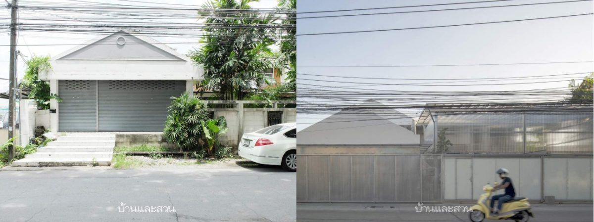คุณเค-ไพลิน หงษ์วิทยากร สถาปนิกของการรีโนเวตบ้านหลังนี้ เริ่มต้นจากเเนวคิดการเชื่อมต่อบ้านทั้งสองหลังของคนสามวัยเข้าด้วยกัน ซึ่งคุณเคได้ตีความพื้นที่ใหม่นี้โดยตั้งใจว่า พื้นที่ทั้งหมดจะต้องรู้สึกเป็นพื้นที่เดียวกัน มีความเป็นส่วนตัว แต่ก็ยังรับรู้ถึงสภาวะแวดล้อมภายนอกได้ สิ่งแรกที่ทำให้ภาพรวมของพื้นที่ทั้งหมดเปลี่ยนไปคือการจัดการพื้นที่หน้าบ้านเสียใหม่
