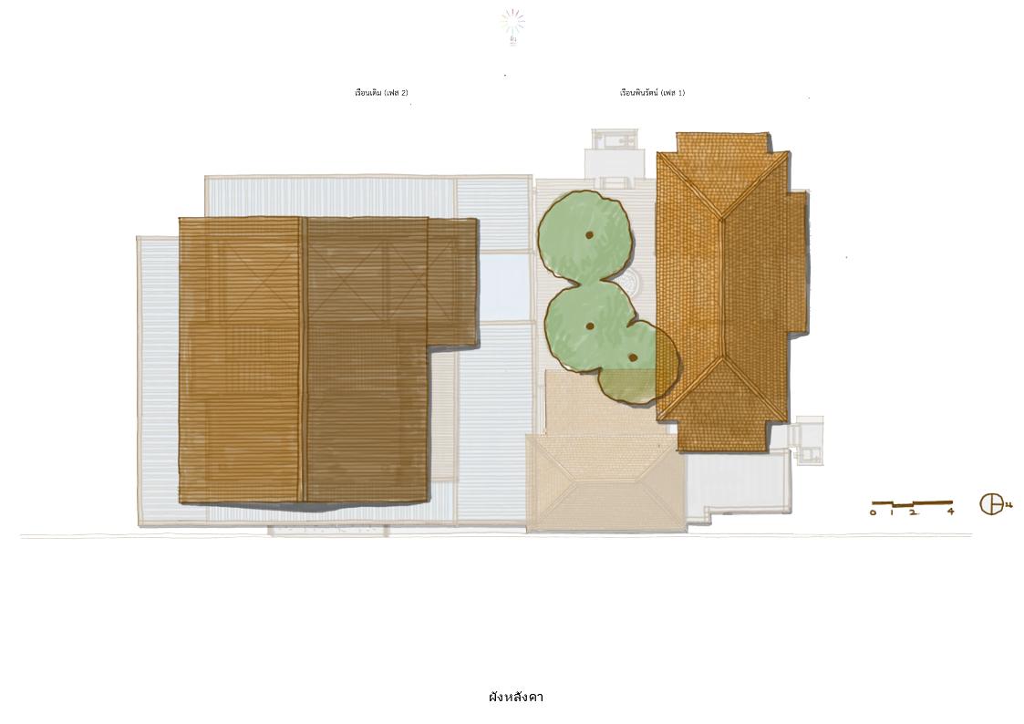 “การทำบ้านหลังนี้ เราไม่สามารถคิดหรือจินตนาการเองได้เลยว่าอะไรคือสิ่งที่ “ใช่” ในความทรงจำ จึงต้องอาศัยทำความเข้าใจจากลายเส้นของคุณวิวัฒน์เป็นหลัก ซึ่งสิ่งที่พบคือผังของบ้านที่เรียบง่าย บรรยายไว้ในสิ่งที่เป็นความทรงจำและระลึกถึง มากกว่านั้นการที่ผังนี้ได้ผ่านกระบวนการคิดมาแล้วว่าอะไรที่เหมาะสมกับชีวิตปัจจุบันของครอบครัวรอดสุด ในฐานะสถาปนิกจึงมีหน้าที่ออกแบบบ้านให้มีพื้นที่น่าใช้สอย เช่น การวางเรือนตามเเนวตะวัน ออกแบบบันไดให้อยู่ทางทิศตะวันตกเพื่อกันเเดดบ่าย วางห้องน้ำไว้ทางทิศตะวันออก แล้วเปิดทิศเหนือและทิศใต้ให้โล่งที่สุดเพื่อที่จะเชื่อมบ้านกับสวนเข้าด้วยกัน เป็นการผสานภาพร่างของความทรงจำเหล่านั้นให้เป็นจริง โดยมีเรา(สถาปนิก) คอยช่วยกำกับให้สามารถใช้งานพื้นที่ต่าง ๆ ในบ้านได้ดียิ่งขึ้น”