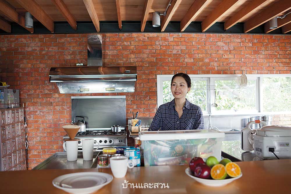 เจ้าของบ้านมีส่วนร่วมในการออกแบบตั้งแต่เริ่มแรกจนถึงออกไอเดียในการตกแต่งภายใน โดยได้สถาปนิกหนุ่มมากฝีมืออย่าง คุณเอก – สาริน นิลสนธิ จาก D Kwa Architectural Design Studio เป็นผู้ออกแบบบ้านเท่ ๆ หลังนี้ คุณยะเล่าให้ทีมงาน “บ้านและสวน” ฟังว่า “เราคิดและตั้งคำถามกับสถาปนิกถึงความนิยมในการวางส่วนนั่งเล่น ส่วนรับประทานอาหาร และส่วนครัว ซึ่งเป็นพื้นที่กึ่งสาธารณะ แต่ใช้งานบ่อยที่สุดไว้ชั้นล่างและวางพื้นที่ส่วนตัวอย่าง ห้องนอน ที่ใช้งานในระยะเวลาสั้น ๆ ไว้ชั้นบน ทำให้วิวที่เราเห็นบ่อยที่สุดกลายเป็นวิวชั้นล่างที่ไม่สวย เราจึงคิดสลับฟังก์ชันให้ห้องนอนมาอยู่ชั้นล่าง และกลุ่มพื้นที่ใช้งานบ่อย ๆ อย่าง ห้องนั่งเล่น ไปอยู่ชั้นบนแทน เราจึงได้เห็นมุมมองในภาพกว้างที่สวยกว่าเดิม”