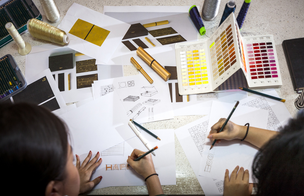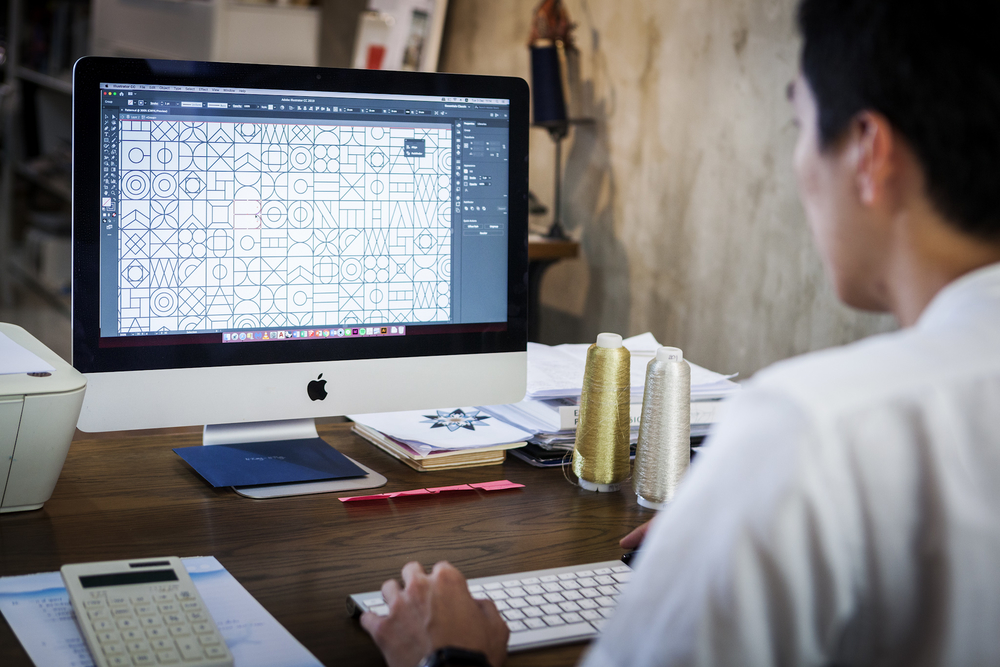 รัมม์รดา : “ก่อนหน้านี้เราทดลองการวางกระเบื้องหลาย ๆ แบบเพื่อสร้างแพตเทิร์นที่แปลกใหม่ ทดลองจนสรุปลงตัวที่แบบนี้ ซึ่งมีตัวตนความเป็น ease studio อยู่ชัดเจน เป็นลวดลายกราฟิกที่สอดแทรกความเป็นตะวันออกผสมผสานกับความโมเดิร์นเป็นความเก่าผสมใหม่ที่ดูร่วมสมัย โดยเราได้นำลวดลายนี้ไปใช้กับการ์ดและซองปากกาด้วย”