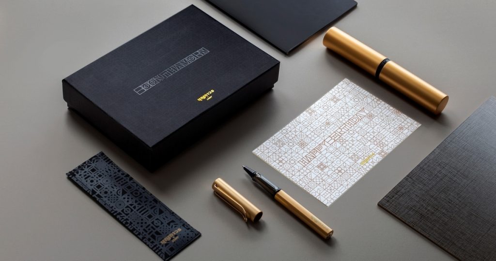 ชุดของขวัญBOONTHAVORN x ease studio Premium Gift 2020 ประกอบด้วยปากกา Lamy สีทองพร้อมกล่องและซองปากกาและการ์ดของขวัญ