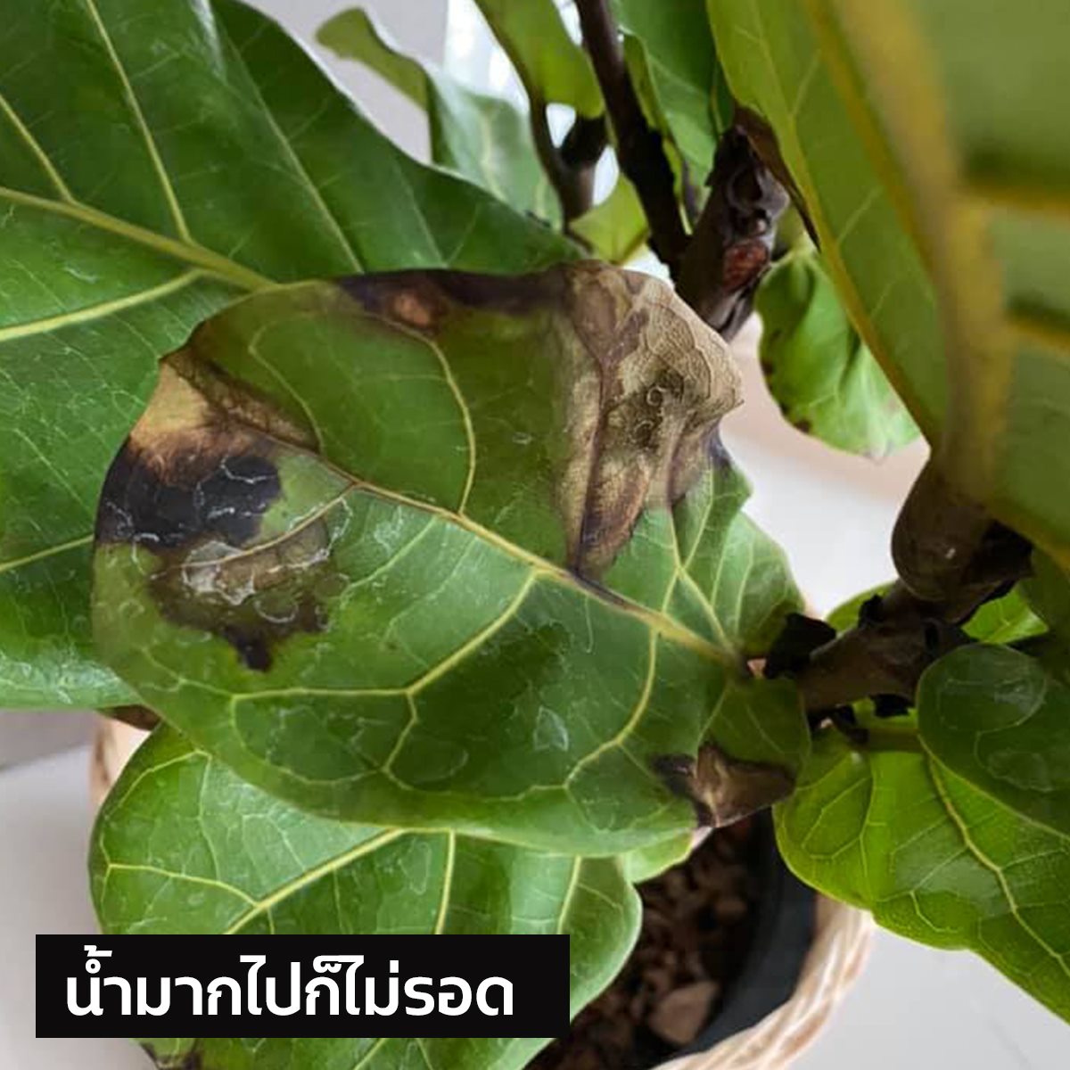 ปัญหาส่วนใหญ่ที่พบคือมีอาการขอบใบเหลือง ไปจนถึงแห้งหรือกลายเป็นสีน้ำตาล ปัญหานี้มีที่มาจากการรดน้ำมากจนเกินไป ควรรดน้ำให้น้อยลงหรือเปลี่ยนวัสดุปลูกให้ระบายน้ำและมีอากาศถ่ายเทดียิ่งขึ้น รดน้ำเพียงหนึ่งครั้งทุก 4-5 วัน เนื่องจากต้นไม้อยู่ในพื้นที่ร่ม ปริมาณแสงน้อย ต้นไม้ต้องการน้ำเพื่อใช้ในกระบวนสังเคราะห์ด้วยแสงน้อยลง และควรรดในช่วงเช้าให้ต้นไม้ได้มีเวลาสังเคราะห์แสงและไม่มีน้ำค้างอยู่ที่ใบจนเน่าได้