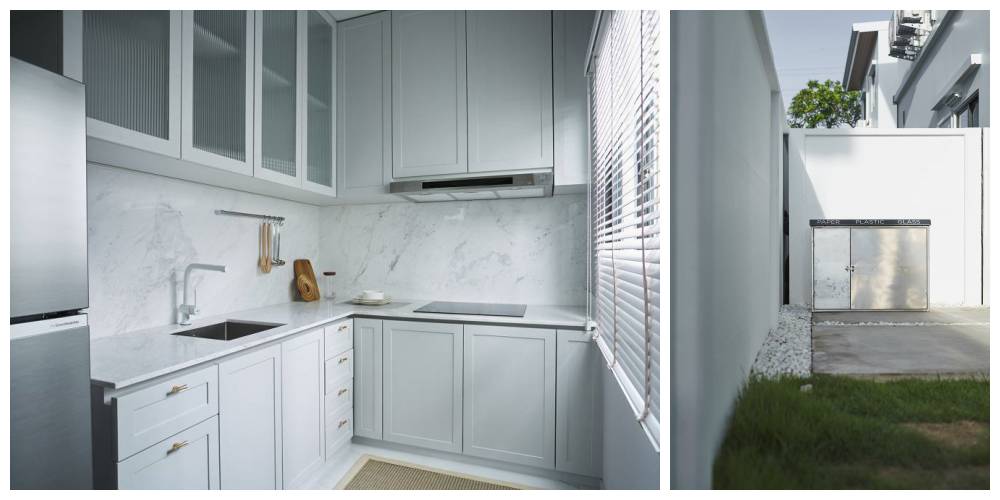 สำหรับครอบครัวไหนที่ชื่นชอบการทำอาหารไทย ก็ไม่ต้องกังวลว่ากลิ่นอาหารจะเข้าไปรบกวนคนในบ้าน เพราะทางโครงการได้ออกแบบแยกพื้นที่ครัวไทยเเละครัวฝรั่งอย่างเป็นสัดส่วนด้วยประตูกระจก จึงมั่นใจได้ว่ากลิ่นอาหารจะไม่เข้าไปรบกวนสมาชิกคนอื่น ๆ ถึงในบ้านเเน่นอน ขณะที่ด้านหลังยังเชื่อมต่อไปยังพื้นที่ซักล้าง และโซนแยกขยะรีไซเคิลหลังบ้านอีกด้วย