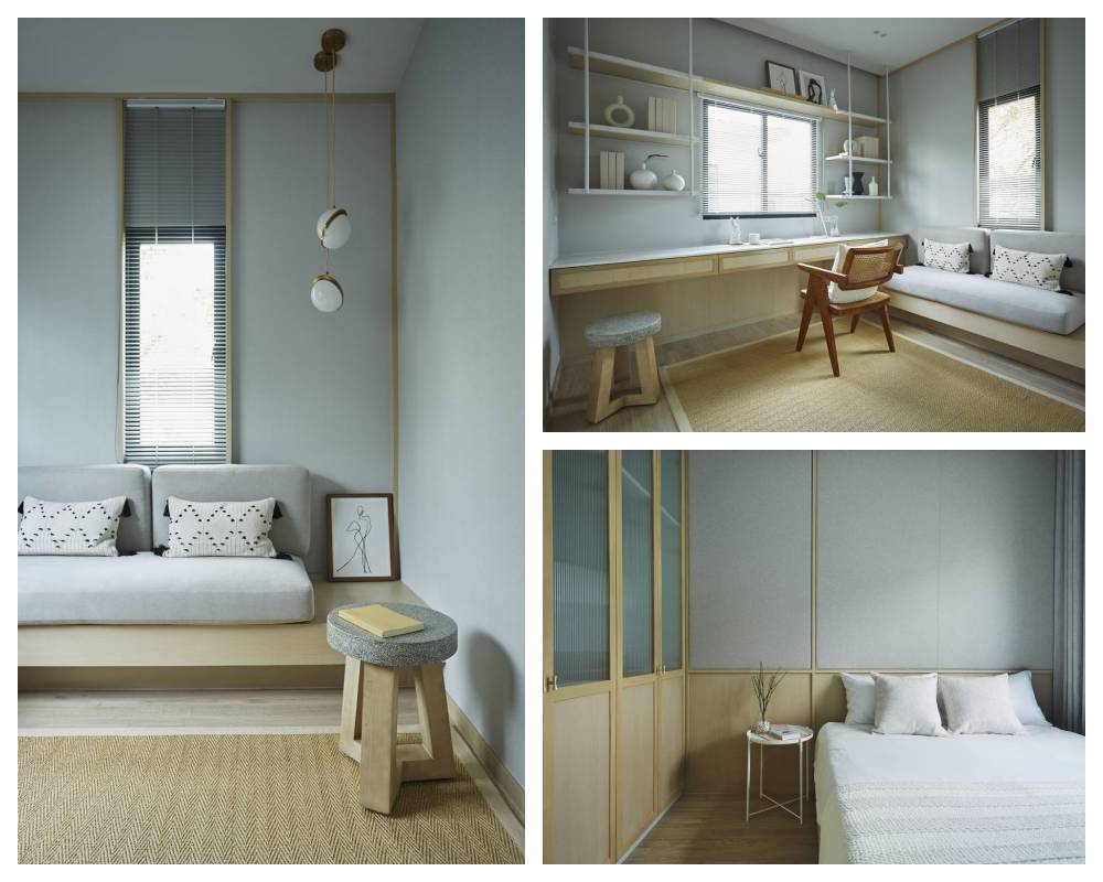 นอกจากนี้ยังมีห้องนอนเล็กอีก 2 ห้อง ออกแบบไว้สำหรับห้องลูกในอนาคต หรือจะเป็นห้องทำงานก็ได้ แต่พอเข้ามาจะพบว่า แม้จะเป็นห้องนอนเล็กแต่พื้นที่ไม่ได้เล็กตามเลย โดยมีพื้นที่วางเตียงนอน 5 ฟุต ได้อย่างสบาย ๆ มาพร้อมกับกระจกในทุกห้อง ทำให้ไม่รู้สึกถึงความคับแคบหรืออึดอัดใด ๆ เลย