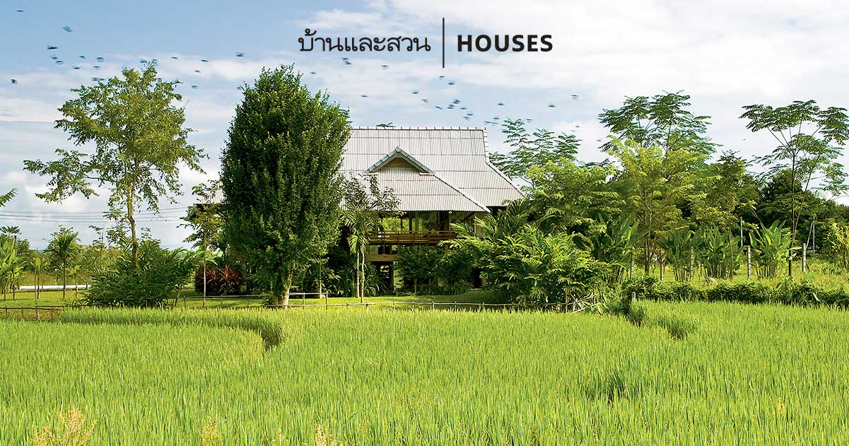 เรามายืน ณ ที่ตรงนี้ และก็เห็นจริงตามที่คุณธิดาบอก ทำเลของบ้านอยู่นอกเมืองเชียงใหม่ ไม่ไกลจากตลาดแม่ริมสักเท่าไหร่ ช่วงที่เรามาเป็นช่วงก่อนการเก็บเกี่ยวจึงได้เห็นผืนนาอันเขียวขจี ลมที่พัดมาจากช่องเขาซึ่งอยู่ไม่ไกลนักค่อย ๆ พัดไล่ไปตามยอดอ่อนของใบและรวงข้าวสีเขียวอ่อน เกิดเป็นระลอกคลื่นที่งดงาม เมื่อผสมผสานกับเสียงกระทบกันเบาๆของใบข้าวก็ทำให้บรรยากาศน่ารื่นรมย์ไม่น้อย บ้านไม้ชั้นเดียวใต้ถุนสูง