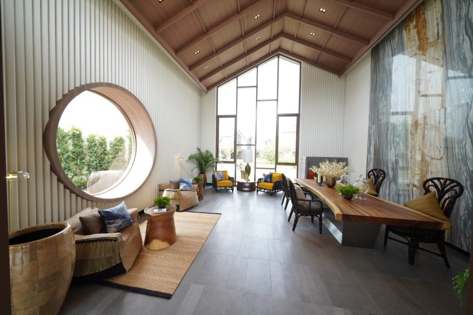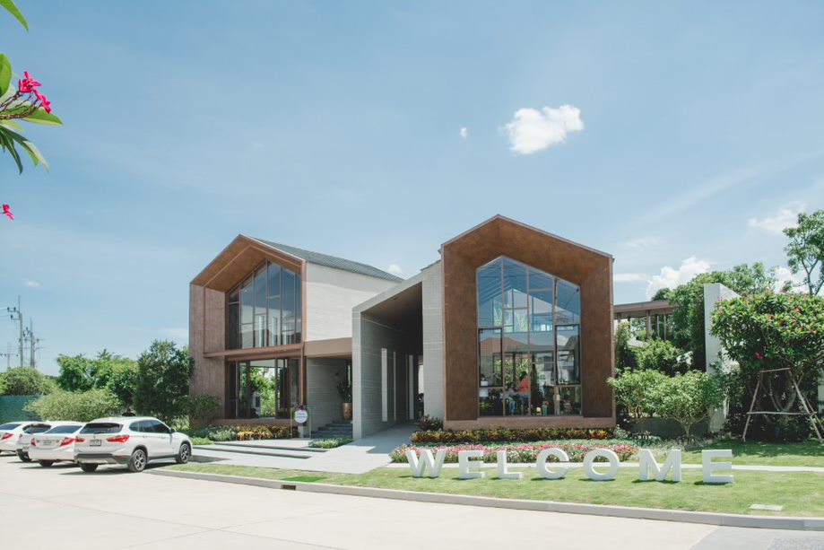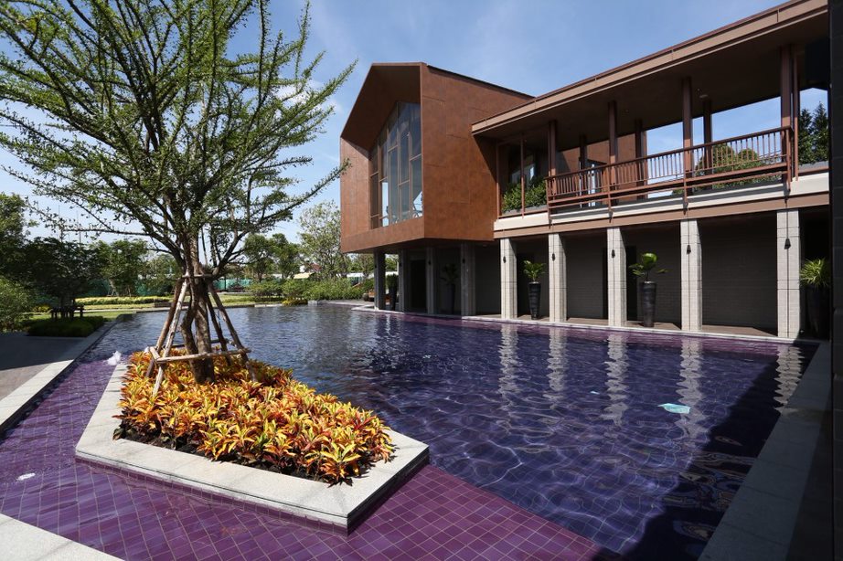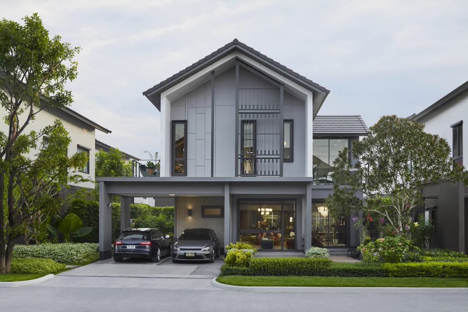 เริ่มกันที่คลับเฮ้าส์ของโครงการที่โดดเด่นสะดุดตาด้วยรูปทรงหน้าจั่วทว่าดูทันสมัย ซึ่งได้แนวคิดการออกแบบมาจากวิธีการวางผังของเรือนไทยหมู่คหบดี ที่มักวางตัวอาคารเป็นเรือนหมู่ โดยวางอาคารล้อมพื้นที่ชานซึ่งอยู่ตรงกลาง เสมือนเป็นชานสำหรับทำกิจกรรมและพบปะสังสรรค์ เข้ากันดีกับการใช้งานของคลับเฮ้าส์ที่เป็นศูนย์รวมกิจกรรมของคนทั้งหมู่บ้านได้มาพบเจอกัน