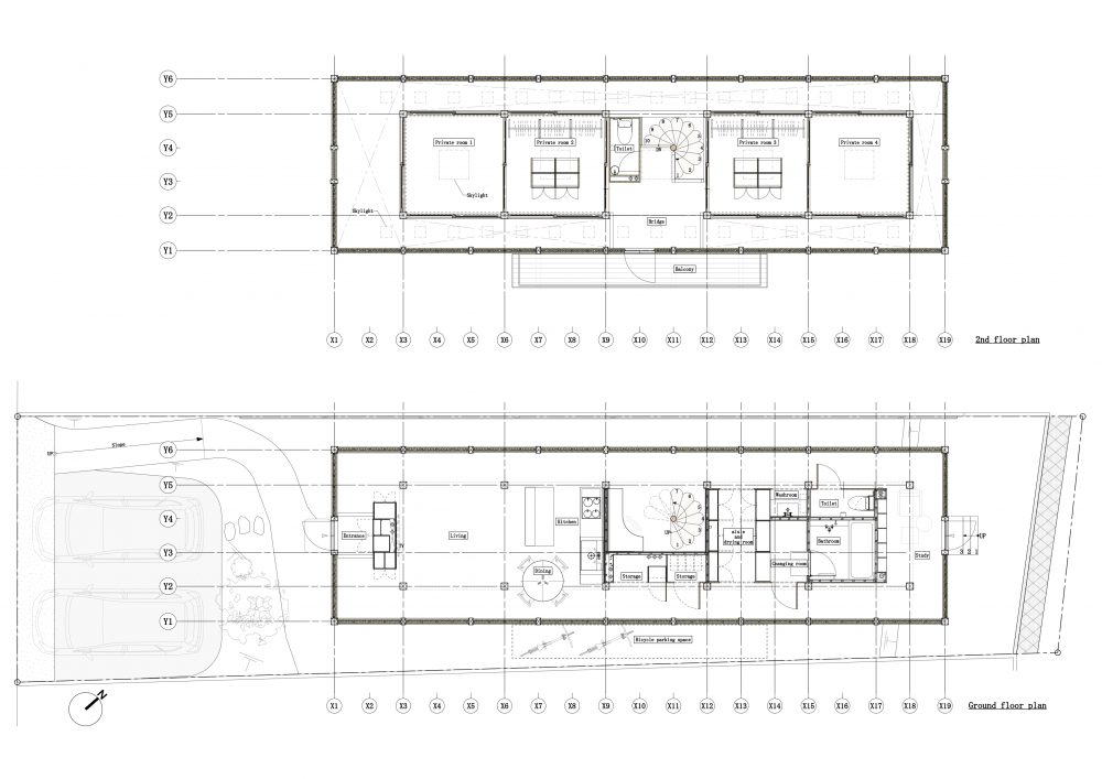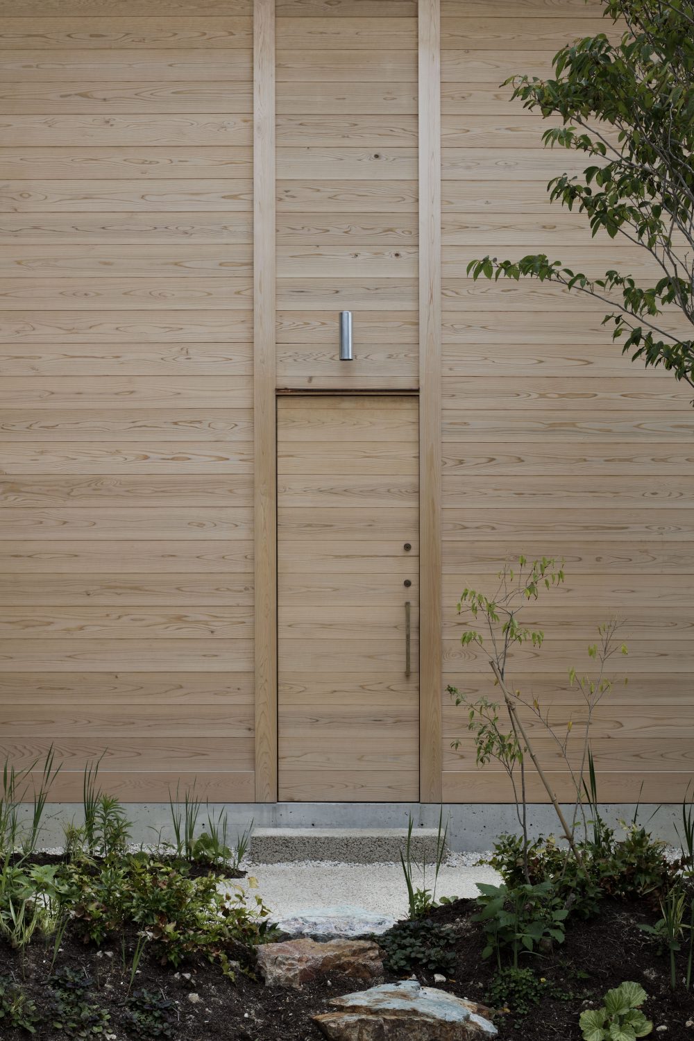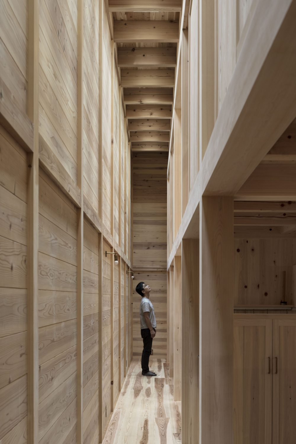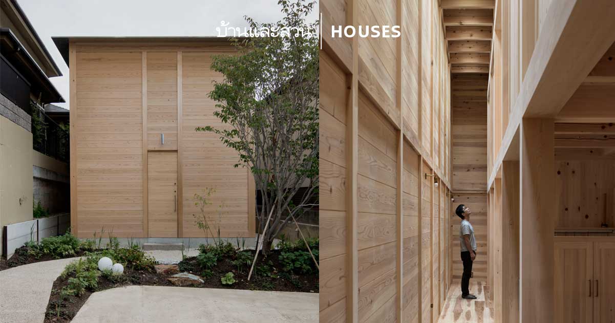 บ้านไม้ทรงกล่องสองชั้นที่ล้อมด้วยผนังไม้สนยาวตลอดเเนว กลายเป็นฟาซาดดูเด่นกว่าบ้านละเเวกใกล้เคียง มาพร้อมคอนเซ็ปต์ปิดล้อมเพื่อสร้างความเป็นส่วนตัวท่ามกลางบรรยากาศเงียบสงบ ฉีกกฎด้วยการยกช่องเปิดทั้งหมดให้ขึ้นไปอยู่บนหลังคาเเทน จนเเทบไม่ต้องมีหน้าต่างเลยสักบานOgimachi House