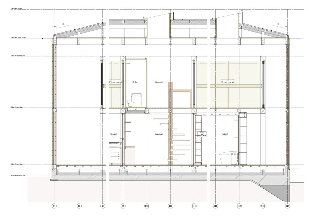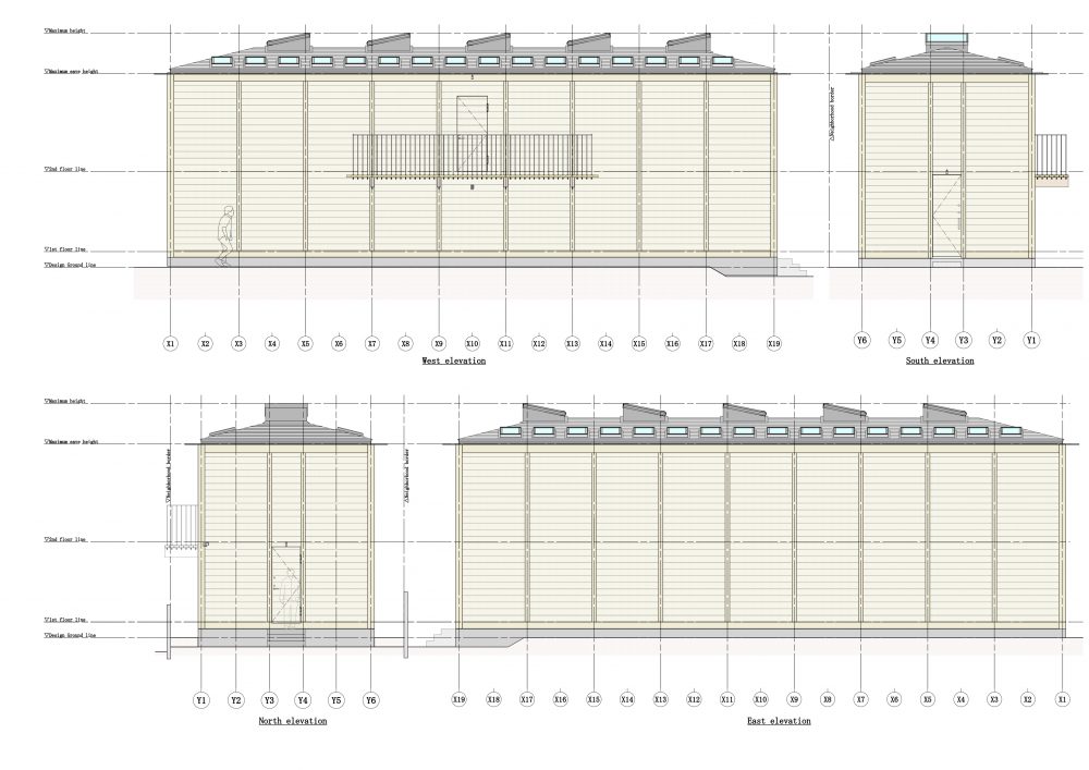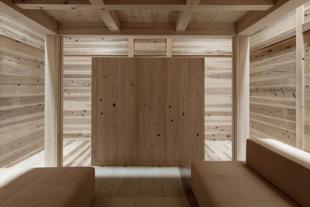 ตัวอาคารทั้งหลังสร้างขึ้นจากไม้สนที่มีสีเเละลวดลายที่สวยงาม โดยใช้เทคนิคการเข้าไม้เเบบ “ITAKURA” ไม่ใช้นอต หรือตะปูใด ๆ เป็นตัวยึด ซึ่งเป็นภูมิปัญญาการสร้างบ้านดั้งเดิมของชาวญี่ปุ่น เเล้วเลือกที่จะเปิดรับเเสงธรรมชาติ วิวท้องฟ้า เเละการถ่ายเทอากาศที่ดีจากช่องหลังคาสกายไลท์ขนาดใหญ่ 5 บาน ที่สามารถเปิด-ปิดได้ ร่วมกับช่องเเสงอีก 32 ช่อง ที่ออกแบบให้ยาวตลอดเเนวหลังคาเเทน