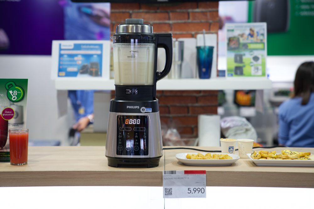 ช่วงที่ผ่านมาหลายคนอาจรู้สึกว่ามีทักษะการทำอาหารมากขึ้น เราเลยเอาใจด้วยการพามาดูสินค้าสุดพิเศษที่รับรองว่าต้องถูกใจทั้งสายสุขภาพ และคนชื่นชอบการทำอาหารอย่างแน่นอน ที่บูธของ PHILLIPS แนะนำหม้อทอด PHILIPS HD9860/91 ดีไซน์สวยทันสมัย มาพร้อมกับฟังก์ชั่นปรับเวลา และอุณหภูมิอัตโนมัติ ด้วยเทคโนโลยี TwinTurboStar ช่วยรีดน้ำมันส่วนเกินออกจากอาหาร ช่วยลดไขมันได้สูงสุดถึง 90%* แต่ยังคงรสชาติความอร่อยไว้เหมือนเดิม ตะแกรงแบบ QuickClean basket สามารถล้างทำความสะอาดได้ง่ายใน 90 วินาที ราคาพิเศษที่ 15,900.-** ฟรี! เซ็ตถุงเก็บอุณหภูมิด้านในมีขวดและกล่องให้ด้วย ต่อกันที่ เครื่องปั่นน้ำผลไม้ PHILLIPS HR2088/91 สร้างสรรค์เมนูโปรดได้ทั้งร้อนและเย็น พร้อมใบมีดฟันปลาพิเศษ 8 แฉก เพื่อการปั่นที่มีประสิทธิภาพ ให้การปั่นที่เนียนด้วยความเร็วสูงสุด 38,000 รอบ/นาที ราคาพิเศษที่ 5,900.-**