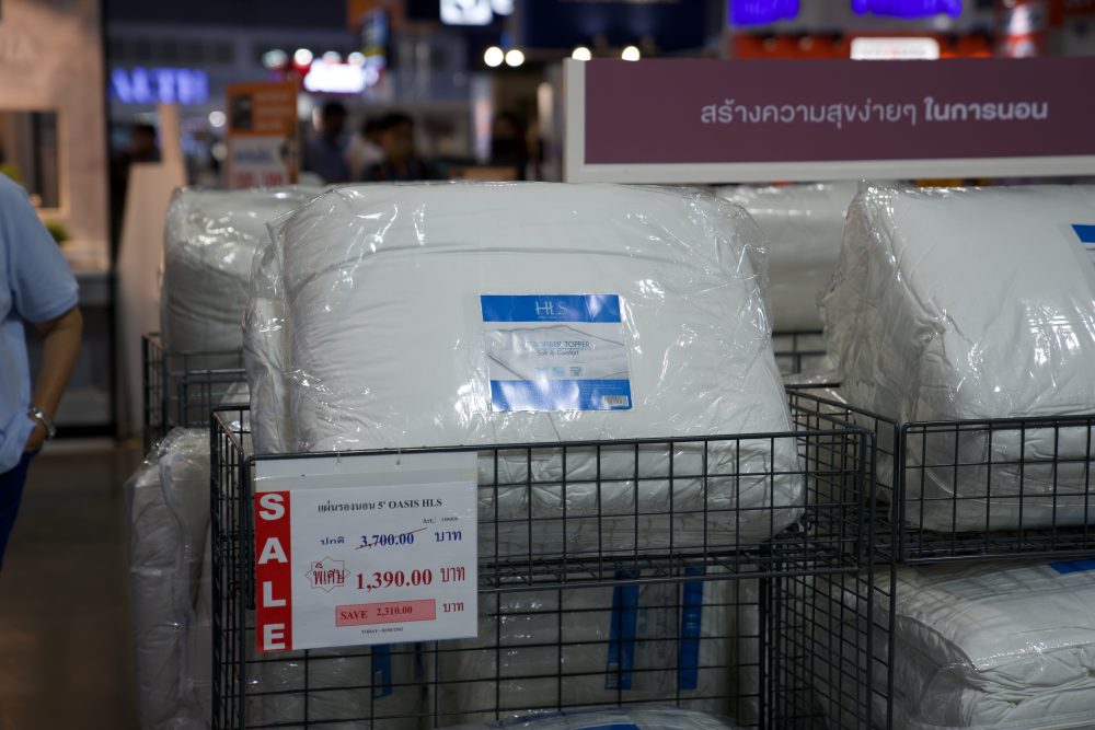 เรารู้ว่าคุณรอโซนนี้อยู่ใช่ไหมคะ คงจะดีไม่น้อยถ้าในแต่ละวันที่กลับมาถึงบ้านได้เจอเครื่องนอน หมอน ผ้าห่มที่นุ่มสบายเหมาะแก่การพักผ่อน ต้องมาที่บูธ HLS เลยค่ะ ซึ่งครั้งนี้จัดหนักจัดเต็มเหมือนเดิม ยกเครื่องนอนมาให้ช้อปกันหลากหลายในราคาพิเศษ ทั้งหมอนหนุน หมอนหนุนสุขภาพ ผ้าห่ม ผ้านวม แผ่นรองนอน ที่นอนปิกนิก ชุดผ้าปูที่นอน และผ้าขนหนู รวมถึง ผ้าม่านไซส์พิเศษ และของตกแต่งบ้านน่ารักๆ สติ๊กเกอร์ติดกระจกและผนัง หมอนอิง เป็นต้น รับรองว่ามาโซนนี้จะได้ความนุ่มสบายในราคาเบาๆ กลับบ้านอย่างแน่นอนค่ะ