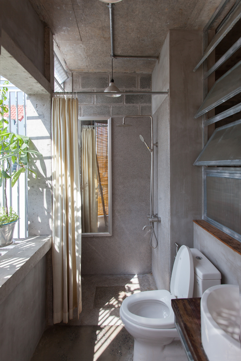 พื้นที่สุขาภิบาลและห้องซักรีดถูกวางตำแหน่งไว้ชิดฝั่งคลอง เพื่อให้แสงแดดและอากาศบริสุทธิ์หมุนเวียนเข้ามาได้ทั่วถึง โดยออกแบบช่องว่างของอาคารและเพดานสูงโปร่งแบบดับเบิ้ลสเปซ ช่วยให้มีพื้นที่ลื่นไหลเชื่อมโยงกันอย่างอิสระ พร้อมออกแบบระบบประตูบานเฟี้ยมเฟรมเหล็กกรุกระจกทั้งบาน เพื่อเปิดรับลมและพื้นที่สีเขียวริมระเบียงช่วยกรองฝุ่นและเสียงรบกวนได้อย่างดี