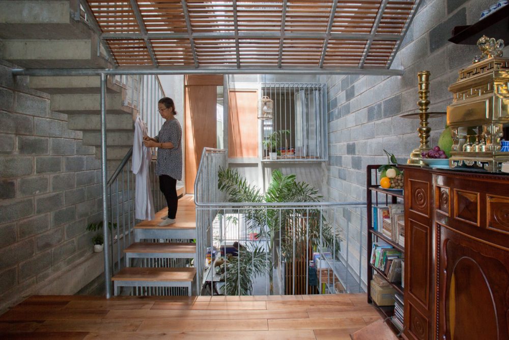 ทีมสถาปนิกจึงพยายามออกแบบพื้นที่ใช้สอยของพวกเขาให้ก้าวข้ามปัญหานี้ ไปพร้อมกับการรักษาขนบธรรมเนียมเดิมของบ้าน ซึ่งต้องมีพื้นที่บูชาพระพุทธหรือห้องพระ และพื้นที่ทำกิจกรรมที่หลากหลาย โดยแทบจะไม่ค่อยมีให้เห็นในบ้านลักษณะเเบบตึกแถวที่มีข้อจำกัดด้านขนาดพื้นที่ เเต่พวกเขาสามารถสร้างสรรค์ฟังก์ชันการใช้งานให้ออกมาได้อย่างน่าเหลือเชื่อ