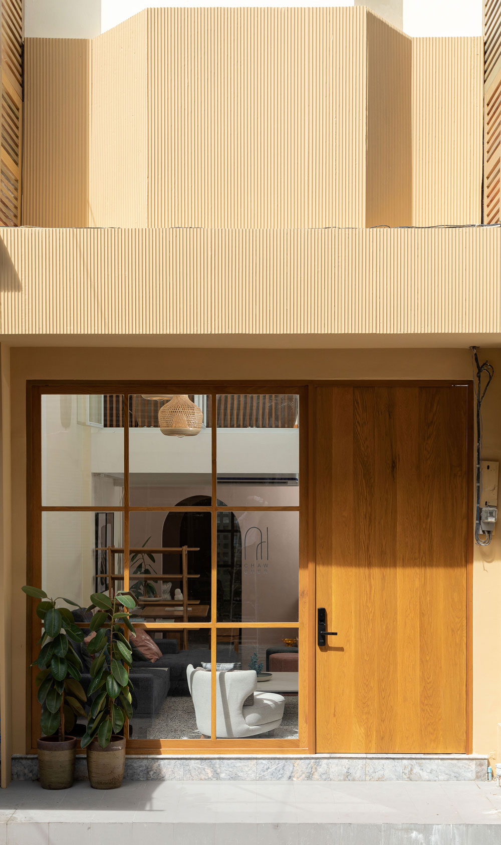 “ เฌอ แปลว่า ต้นไม้ โดยเริ่มจากที่อยากให้ผู้คนได้กลับไปหาธรรมชาติมากขึ้น เมื่อนึกถึงธรรมชาติก็จะนึกถึงต้นไม้ ซึ่งต้นไม้เป็นจุดเริ่มต้นจากหลายๆอย่าง ทั้งผลิตออกซิเจนที่ได้ ออกดอกออกผลให้เก็บกินเป็นอาหารได้ ลำต้นสามารถนำมาสร้างบ้าน สร้างเฟอร์นิเจอร์ และเป็นเชื้อเพลิงในการดำรงชีวิตได้ ” คุณธันน์ธนัถ สิรีกนกรัตน์ หนึ่งในผู้ก่อตั้งแบรนด์ ฌ เฌอ | Chaw Cher บอกเล่าถึงความเป็นมาของชื่อที่ฟังแล้วสบาย ๆ แถมยังสะท้อนผ่านเฟอร์นิเจอร์ และโชว์รูมที่รีโนเวตจากตึกแถวเก่าย่านเจิรญนคร ให้กลายเป็นสตูดิโอที่ให้ความรู้สึกสบาย ๆ เหมือนได้นั่งอยู่ใต้ร่มเงาต้นไม้ใหญ่