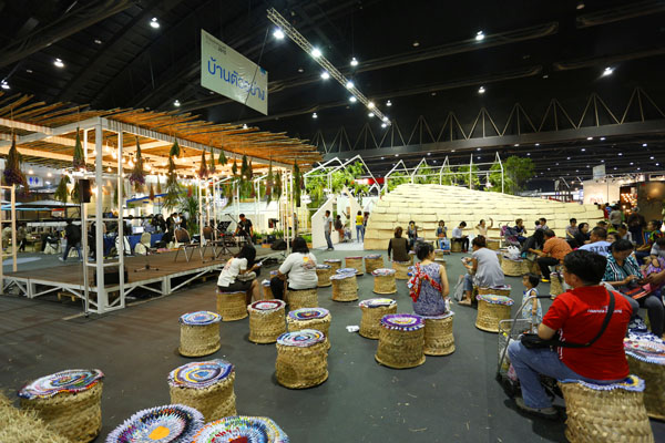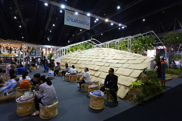 ด้านข้างของบ้านตัวอย่างยังมีเวทีการแสดงดนตรีและเก้าอี้ที่ทำจากวัสดุธรรมชาติให้นั่งพักผ่อนหย่อนใจอีกด้วย