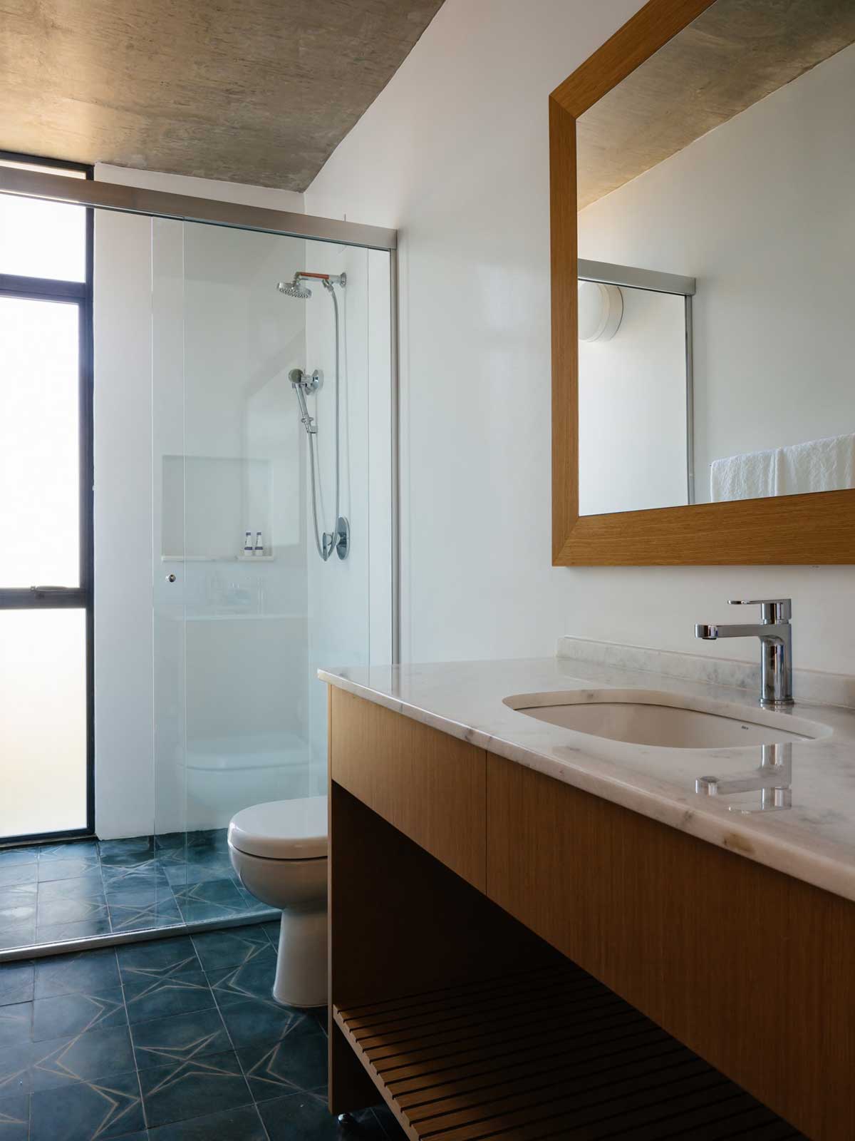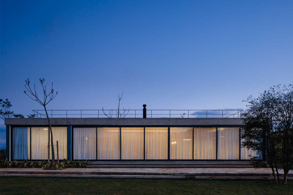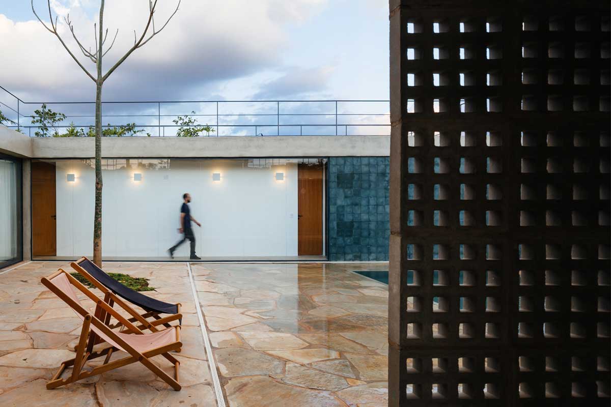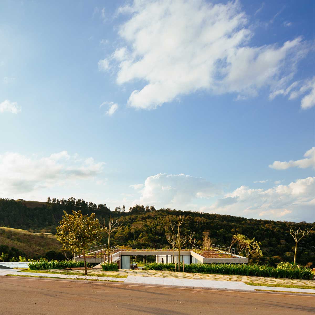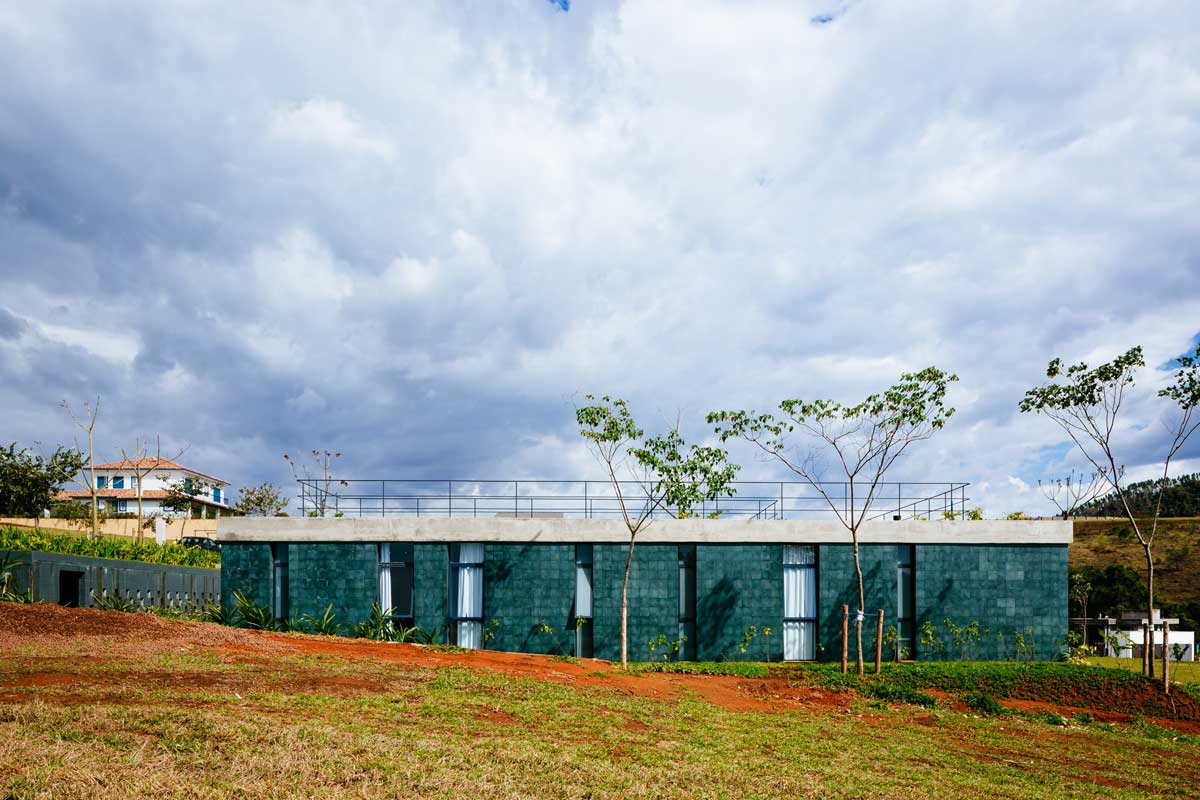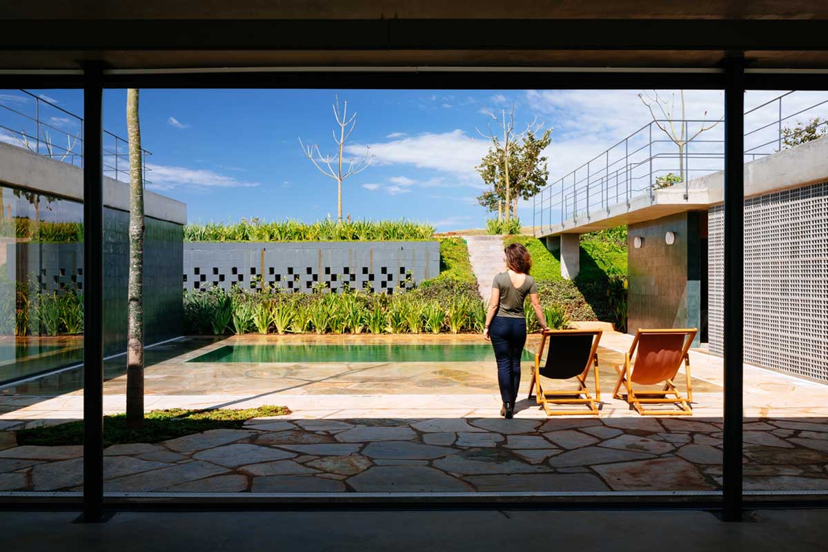 จากจุดเริ่มต้นดังกล่าว Terra e Tuma Arquitetos Associados บริษัทสถาปนิกสัญชาติบราซิลได้คำนึงถึงความสัมพันธ์ระหว่างฟังก์ชันการใช้งานกับสภาพภูมิทัศน์รอบ ๆ ด้วยการใช้ประโยชน์จากมุมมองของวิวที่มีความเป็นส่วนตัวและความลาดชันของพื้นที่มาเป็นตัวกำหนดรูปแบบสถาปัตยกรรม เเล้วก่อสร้างด้วยวัสดุที่เรียบง่ายผ่านขั้นตอนที่ไม่ยุ่งยาก เช่น คอนกรีต เหล็ก กระจก เเละโดยเฉพาะ “อิฐบล็อก” วัสดุราคาไม่เเพงที่เราคุ้นเคย เเต่สามารถนำมาสร้างสรรค์ให้มีดีเทลน่าสนใจได้