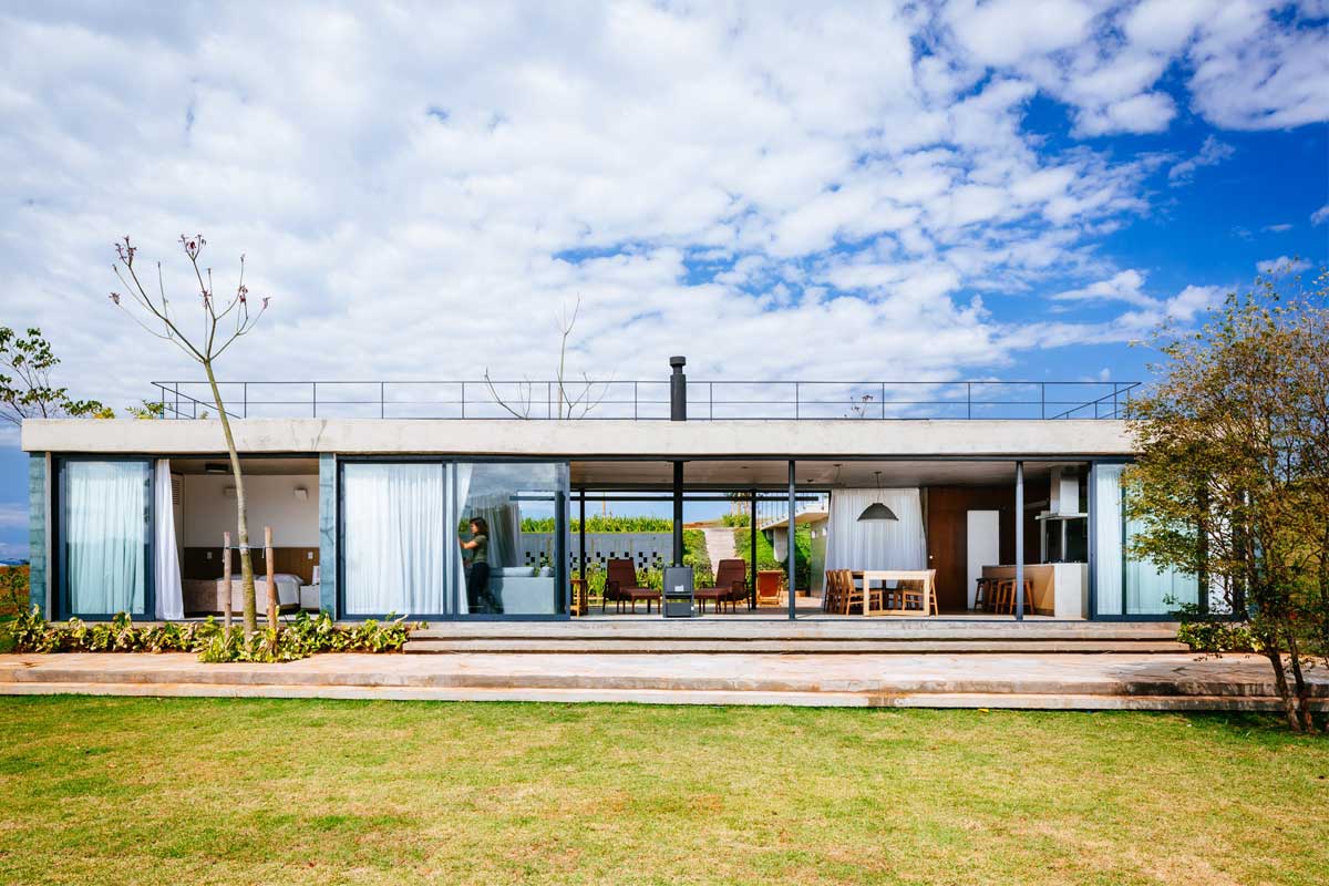 บ้านชั้นเดียว แห่งนี้ ตั้งอยู่ที่ Itatiba ประเทศบราซิล มีจุดเริ่มต้นมาจากสองสามีภรรยาที่ต้องการสร้างบ้านและสำนักงานของพวกเขาให้อยู่ใกล้ชิดธรรมชาติ สามารถใช้เวลาว่างกับลูก ๆ ได้อย่างเต็มที่ หรือหากต้องการจัดปาร์ตี้พักผ่อนกับหมู่ญาติมิตรและเพื่อนฝูงก็ให้ความรู้สึกที่เป็นส่วนตัวสูง ที่สำคัญยังสร้างขึ้นจากวัสดุที่ราคาไม่เเพง เเต่ผ่านการคิดเเละออกแบบมาอย่างดี เพื่อเติมเต็มการพักผ่อนเเละอยู่อาศัยได้อย่างเต็มอิ่ม
