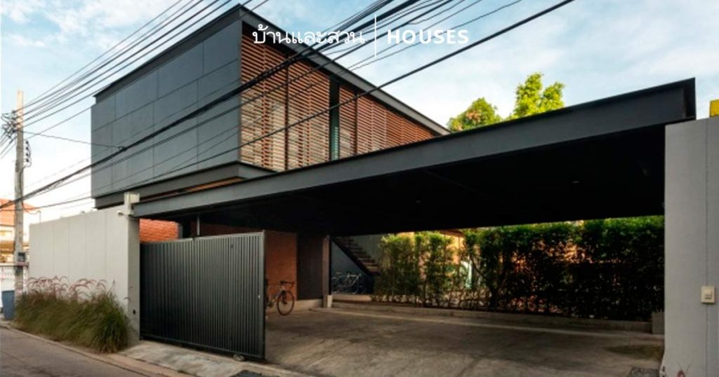 สร้างความเรียบ หรู ดูมีสไตล์ให้ร้ัวบ้านแบบง่ายๆ ด้วยการจับคู่วัสดุระหว่างระแนงไม้เทียมสีน้ําตาลเข้ม โครงเหล็กสีดํา และผนังร้ัว สีขาว แล้วเพิ่มรายละเอียดด้วยการเว้นจังหวะไม้ระแนงให้มีทั้งความทึบและโปร่ง อีกทั้งเซาะร่องผนังร้ัวทึบให้เป็นลวดลาย ช่วยป้องกันผิวปูน แตกร้าวได้ด้วย