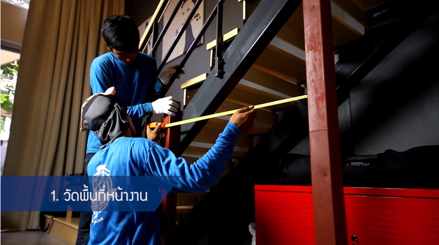เริ่มต้นด้วยการวัดขนาดพื้นที่หน้างานให้พอดีทั้งความกว้าง ความยาว และความสูง เน้นว่าต้องเป๊ะที่สุดนะคะ เพื่อการสั่งโครงเหล็กมาจะได้พอดีไม่มีส่วนเหลือหรือเกินออกมา