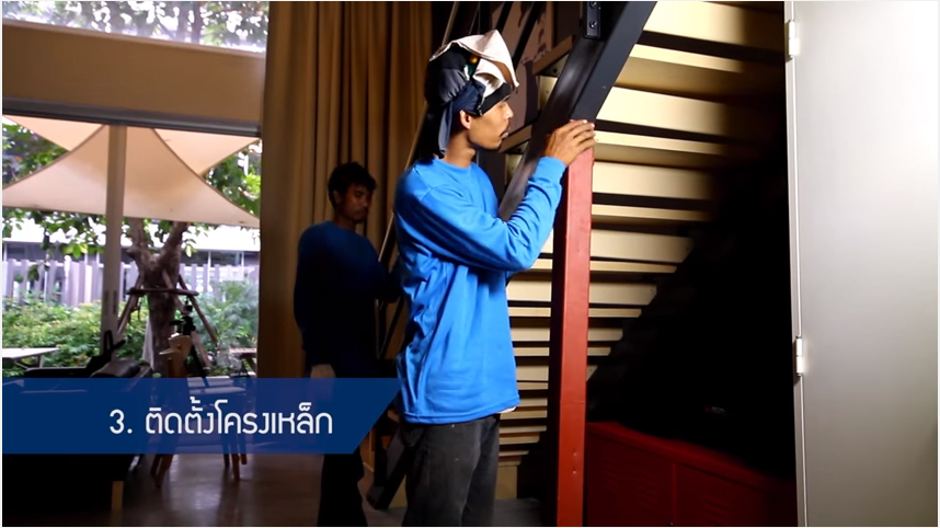 ขั้นตอนที่ 3 ก็คือการติดตั้งโครงเหล็กก่อนเพื่อสร้างกรอบเตรียมยึดกับบานเปิด