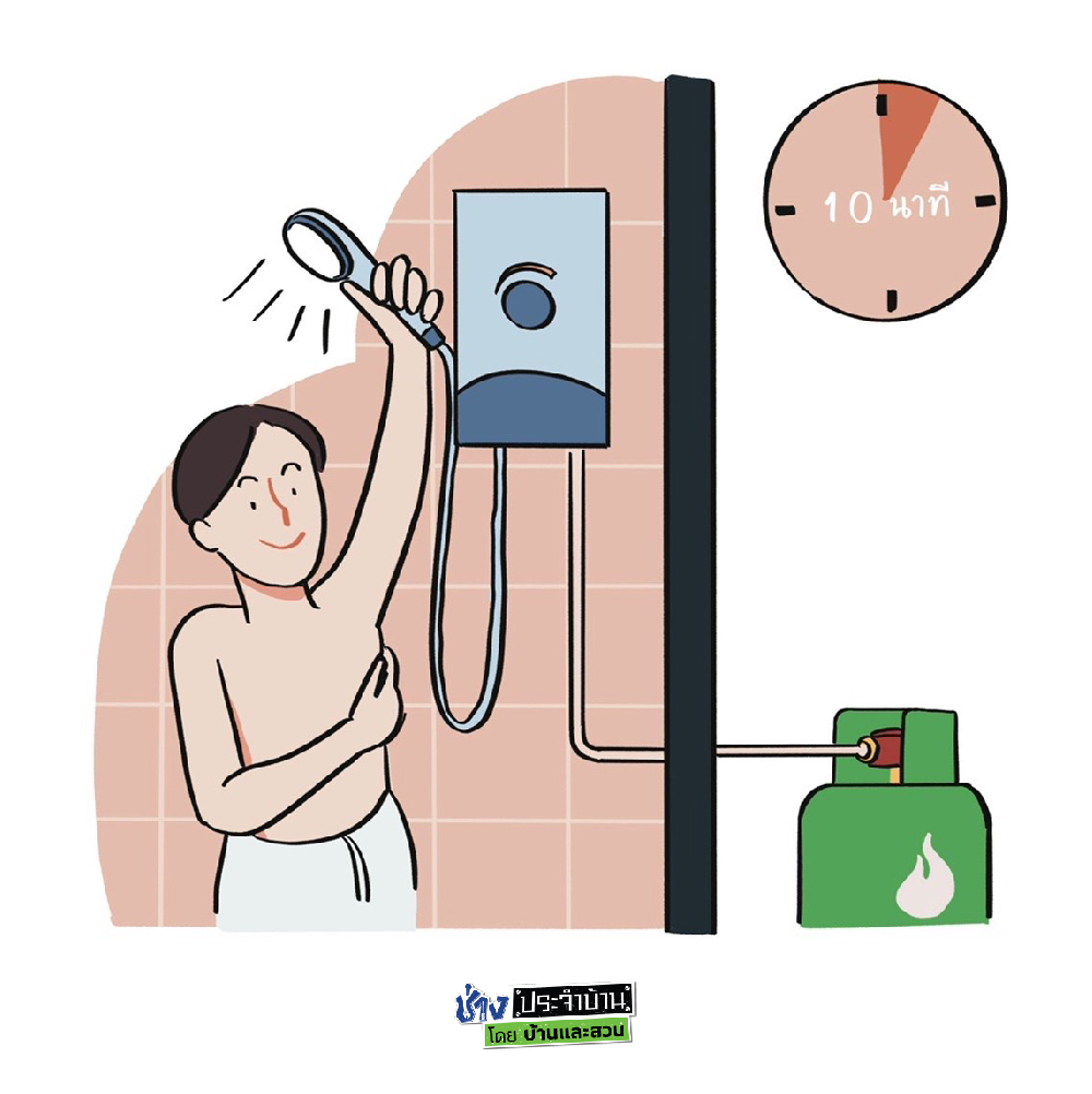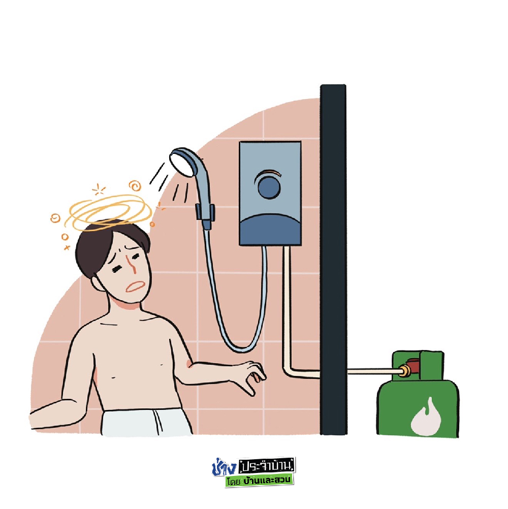 2.ไม่ควรอาบน้ำนานเกินไป เพราะหากการระบายอากาศไม่ดี ก๊าซจะค่อยๆ สะสมมากขึ้นเรื่อยๆ