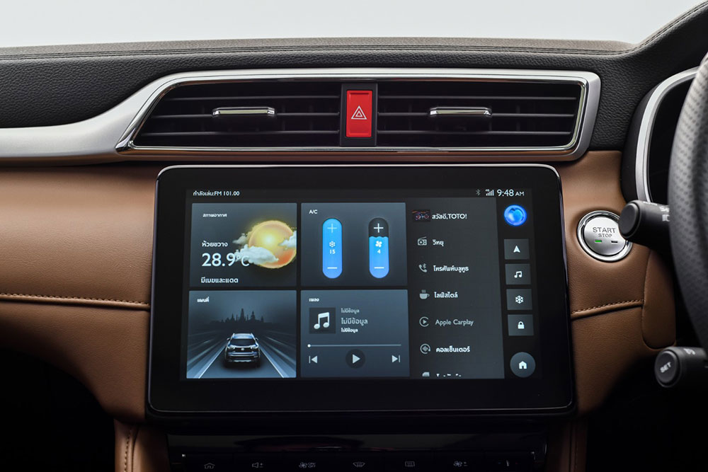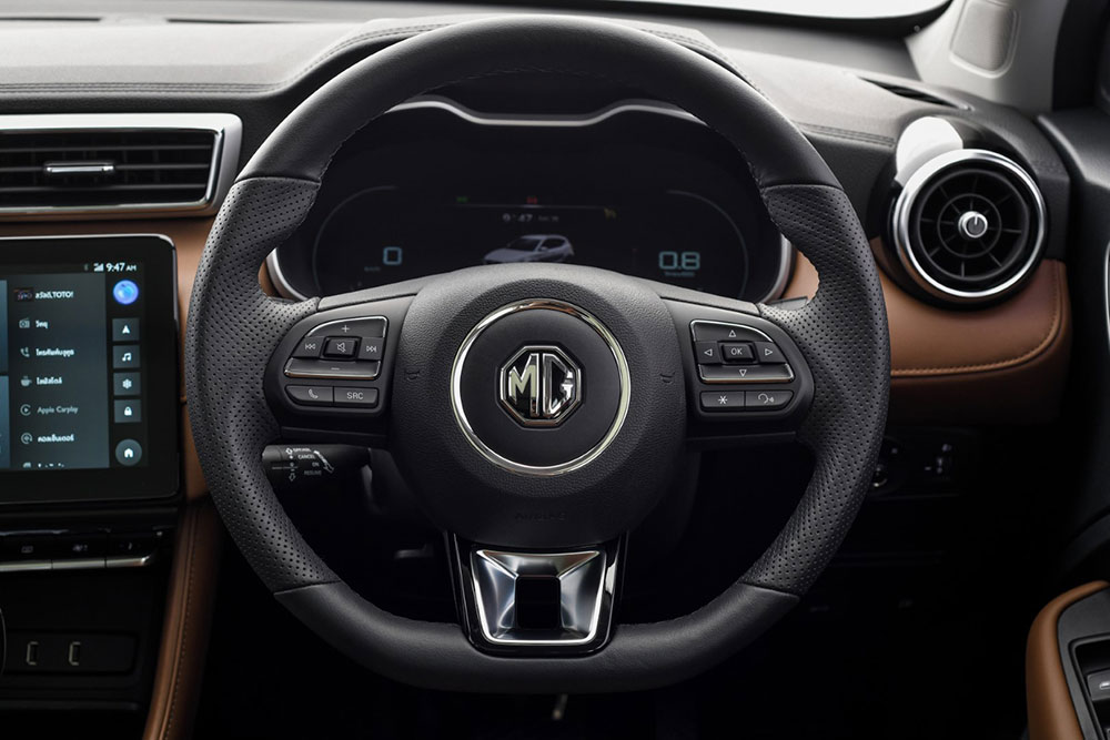 NEW MG ZS มากับลุคภายนอกที่สวยสะดุดตาในดีไซน์สปอร์ตที่ให้ความเรียบเท่ผสานความโก้หรูอย่างลงตัว ไปจนถึงภายในห้องโดยสาร ซึ่งออกแบบให้เป็นสีทูโทนน้ำตาลตัดดำ หน้าปัดดีไซน์ใหม่ มาพร้อมกับหน้าจอ Digital Multi-function display ขนาดใหญ่ถึง 7 นิ้ว ช่วยให้ดูข้อมูลต่างๆ ของรถได้อย่างง่ายดาย และแผงคอนโซลกลาง ที่สวยโดดเด่นเป็นพิเศษ มาพร้อมกับหน้าจอสัมผัสขนาดใหญ่ 10 นิ้ว ให้ภาพละเอียดคมชัด รองรับ Apple CarPlay และระบบ Android ของสมาร์ทโฟน