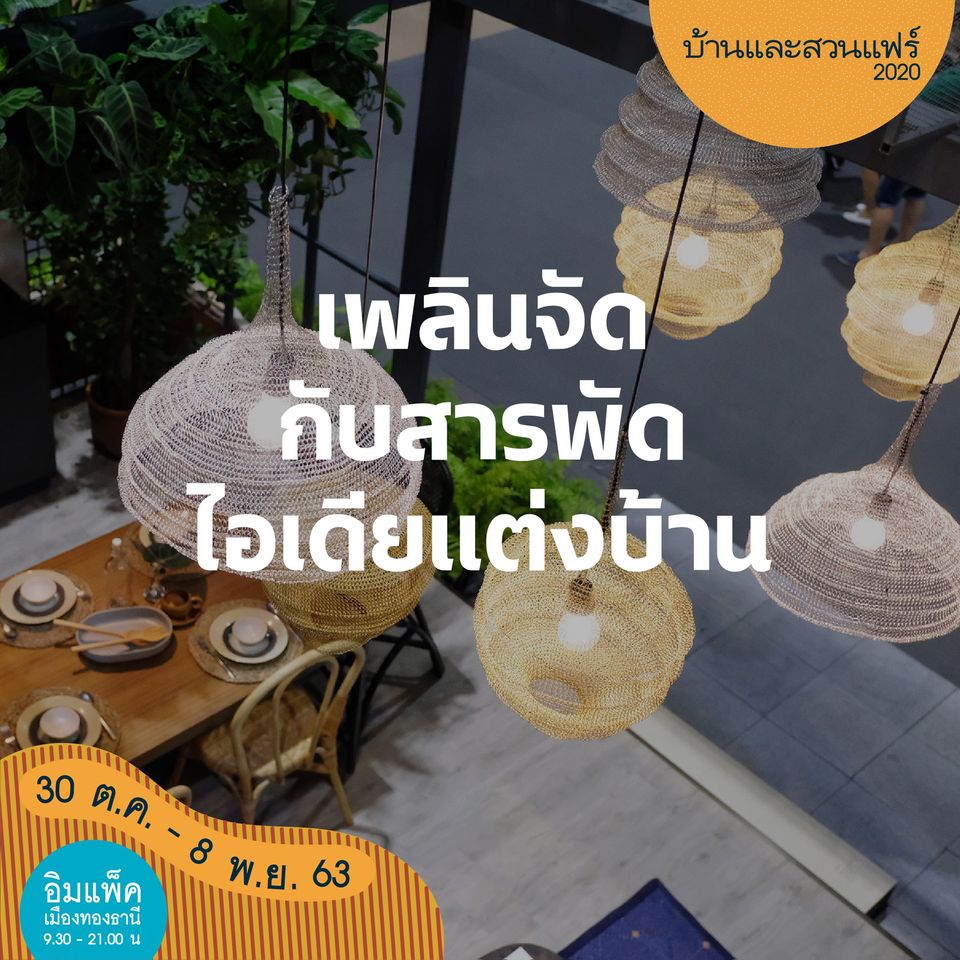 เฟอร์นิเจอร์ ของแต่งบ้าน วัสดุ เครื่องใช้ไฟฟ้า บ้านสำเร็จรูป และทุกสิ่งที่เกี่ยวกับบ้านอีกเพียบ เลือกช้อปและดูไอเดียในงานบ้านและสวนแฟร์ 2020 ได้ จะแต่งบ้านใหม่ รีโนเวทบ้านเดิม เพิ่มเติมบ้านสวยให้สวยยิ่งขึ้น พร้อมโปรราคาพิเศษได้เลย