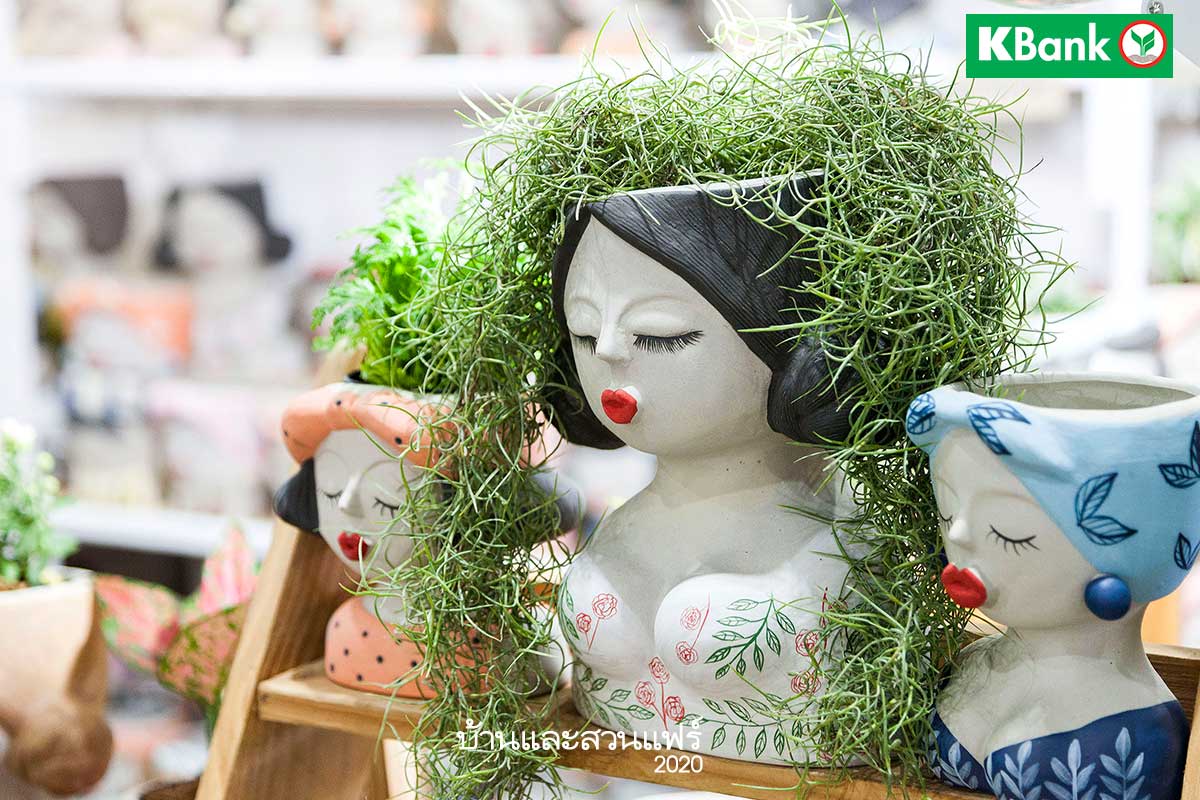 อีกหนึ่งร้านในโซน Art & Craft Market ที่เลือกใช้ K PLUS shop เป็นครั้งแรกคือ MACHALI & MASA STUDIO แม้ว่าคุณเม เมษา เจ้าของร้านจะเปิดร้านจำหน่ายกระถางเซรามิกและของตกแต่งสวนมานาน ทั้งยังมีคาเฟ่ที่จำหน่ายต้นไม้ แต่ประสบการณ์การใช้ K PLUS shop ครั้งแรกในงานบ้านและสวนแฟร์นี้ ทำให้ค้นพบประสบการณ์ในการจัดร้านที่ต่างจากเดิม