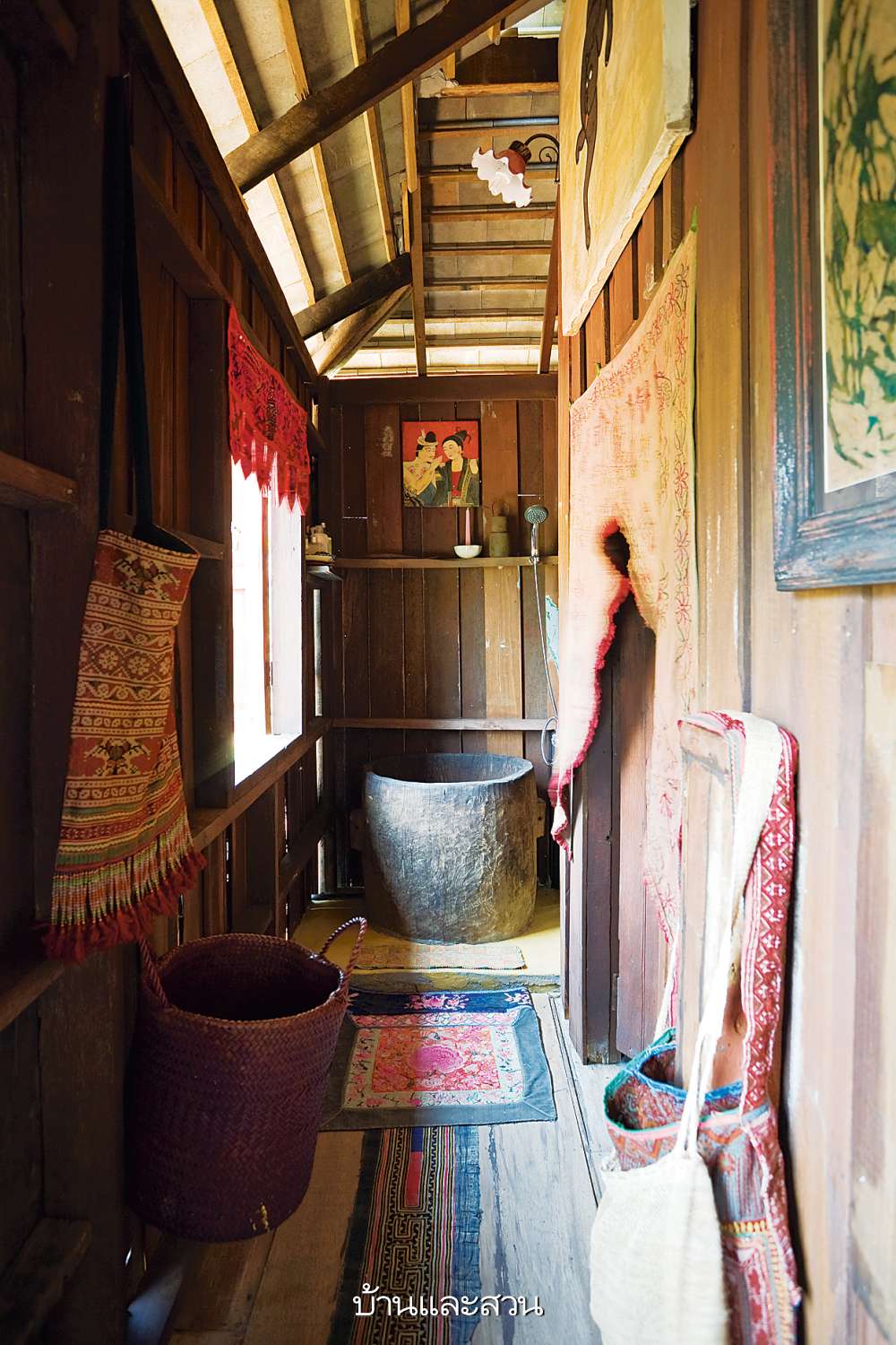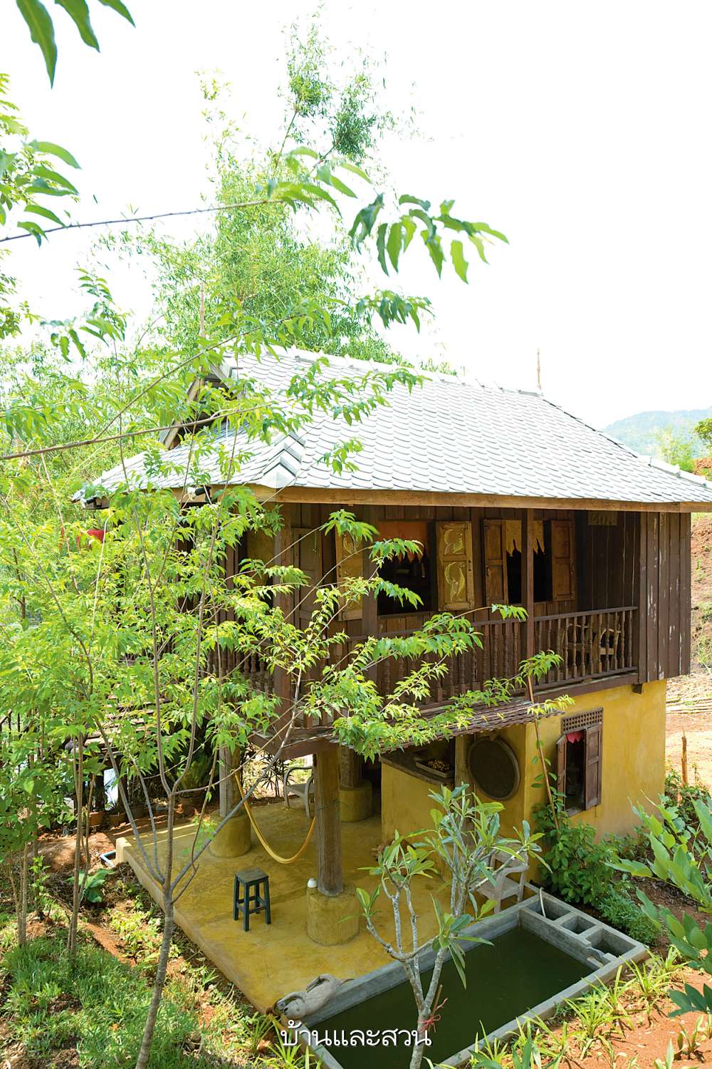 บ้านที่ประยุกต์จากยุ้งข้าวไม้หลังเก่า โดยยกมาตั้งประกอบและขัดเคลือบทำสีไม้ใหม่ พร้อมก่อผนังชั้นล่างโชว์ผิวฉาบด้วยซีเมนต์ผสมสีฝุ่นสีเหลืองเป็นครัวเปิดแบบไทยๆ ดูมีเสน่ห์แบบผสมผสานทั้งเก่าและใหม่เข้ากันได้อย่างสวยงามและใช้งานได้ดี ชั้นบนแบ่งพื้นที่เป็นส่วนนั่งเล่น ห้องนอน และห้องน้ำแบบเปิดโล่ง ตกแต่งด้วยเฟอร์นิเจอร์ไม้และสิ่งทอต่างๆลวดลายแบบชนเผ่าที่มาจากชาวเขาในละแวกใกล้เคียงไปจนถึงของที่ได้จากการเดินทางไปต่างประเทศ อ่านต่อ