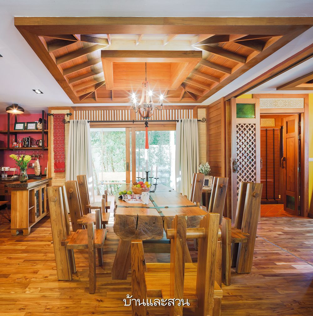 สีสันที่อบอุ่น กลิ่นหอมอันมีเสน่ห์ และผิวสัมผัสที่ละมุมละไม เป็นคุณสมบัติพิเศษของเนื้อไม้ ซึ่งยากจะหาวัสดุใดมาทดแทน และเป็นจุดเริ่มต้นของความหลงใหลในไม้ที่นำพาให้ คุณแทนธรรม รักขิตพินิจดุลย์ ตัดสินใจดัดแปลงบ้านจัดสรรสไตล์โมเดิร์นหลังนี้ให้กลายเป็นบ้านสไตล์ล้านนา บ้านหลังนี้ดูโดดเด่นและแตกต่างจากบ้านหลังอื่นในโครงการอย่างสิ้นเชิง เพราะตัวบ้านตกแต่งด้วยไม้เนื้อแข็งผสมกับคอนกรีตกรุหินแม่น้ำ ล้อมรอบด้วยสวนสไตล์ทรอปิคัล รับกับทางเดินคอนกรีตตกแต่งพื้นผิวด้วยกรวดแม่น้ำทอดไปสู่ทางเข้าบ้าน ซึ่งตกแต่งด้วยเชิงบันไดตามแบบสถาปัตยกรรมล้านนา ถัดไปคือสวนและเรือนรับรองหลังเล็กที่ดัดแปลงมาจากหลองข้าว (เรือนเก็บข้าว) อันเป็นเอกลักษณ์ของบ้านล้านนา อ่านต่อ