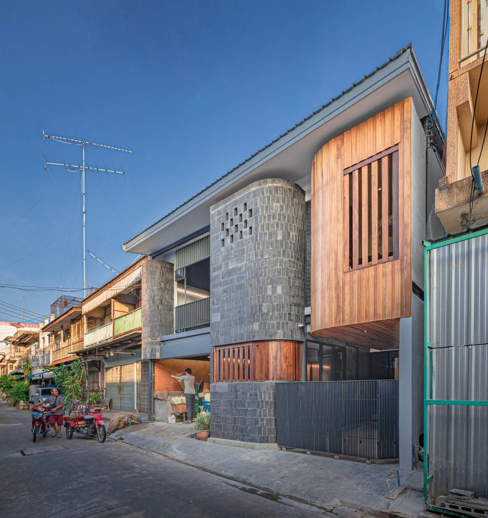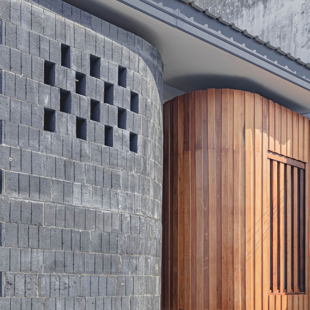 บ้านไม้ กึ่งอิฐ จากสีสันของพริกแกงและรูปลักษณ์ของครก นำมาสู่การตีความหมายให้งานสถาปัตยกรรมผ่านวัสดุและโทนสีที่สะท้อนวิถีชีวิตอันคุ้นเคยของผู้อาศัย