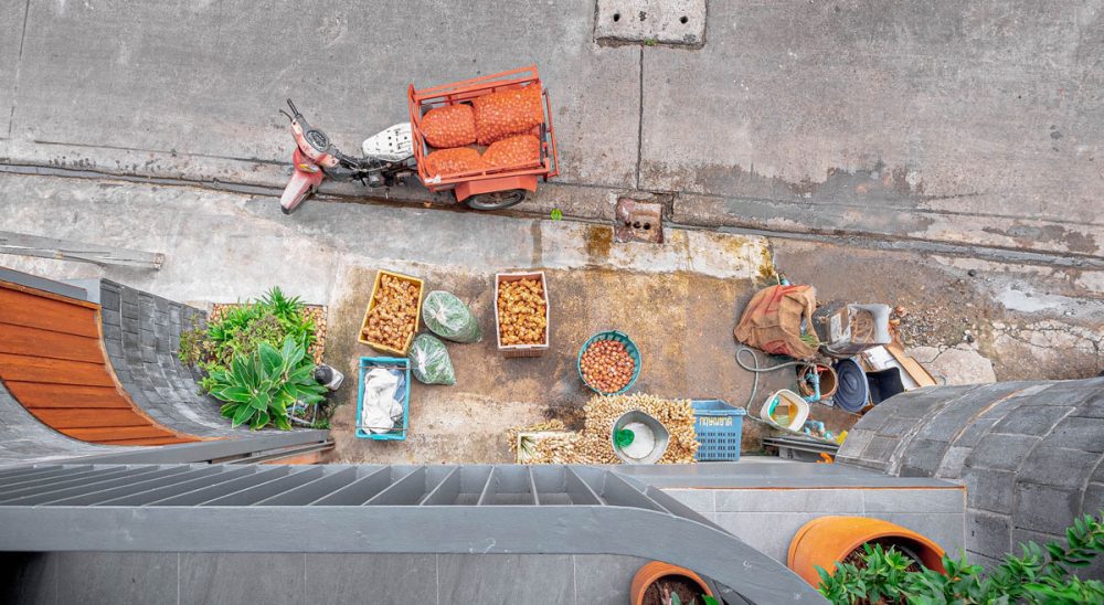 ในบริบทพื้นที่ซึ่งมีบ้านและตึกแถวเรียงรายติดกันหลายคูหา โดยมีทั้งตลาดสด และโรงงานผลิตพริกแกง ซึ่งเป็นกิจการครัวเรือนที่สร้างภาพจำให้ถนนสายนี้ จนทำให้ทุกคราที่ใครสัญจรผ่านไปมาจะสามารถมองเห็นกิจวัตรและกระบวนการผลิตพริกแกงของพวกเขาได้อย่างชัดเจน