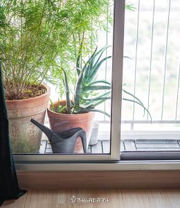 เจ้าของ – ตกแต่ง : คุณศิริวิทย์ ริ้วบำรุง แต่งห้องเล็กด้วยไม้กระถาง