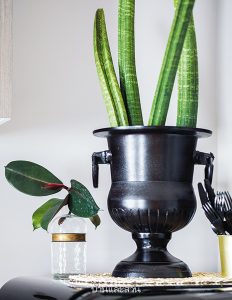 หากกังวลว่าโทนสีขาว – ดำหรือสีเข้มจะทำให้ห้องดูทึบ และอึดอัดเกินไป ลองเติมลูกเล่นด้วย การใช้งานโลหะชิ้นเล็กๆ สีทองเหลืองหรือทองแดงอย่างแจกัน โคมไฟ ฯลฯ ก็ช่วยเพิ่มความสว่างได้เป็นอย่างดี ทั้งยังทำให้ห้องดูเท่ และมีสไตล์ รวมถึงควรเลือกใช้ต้นไม้ให้เหมาะสมกับขนาดของภาชนะและห้องด้วย เช่น ชุดตกแต่งผนังทองเหลือง ประดับด้วยไม้รากอากาศต้นเล็กๆ ก็ทำให้บรรยากาศของห้องดูสบายตาขึ้น แต่งห้องเล็กด้วยไม้กระถาง แต่งห้องเล็กด้วยไม้กระถาง แต่งห้องเล็กด้วยไม้กระถาง แต่งห้องเล็กด้วยไม้กระถาง