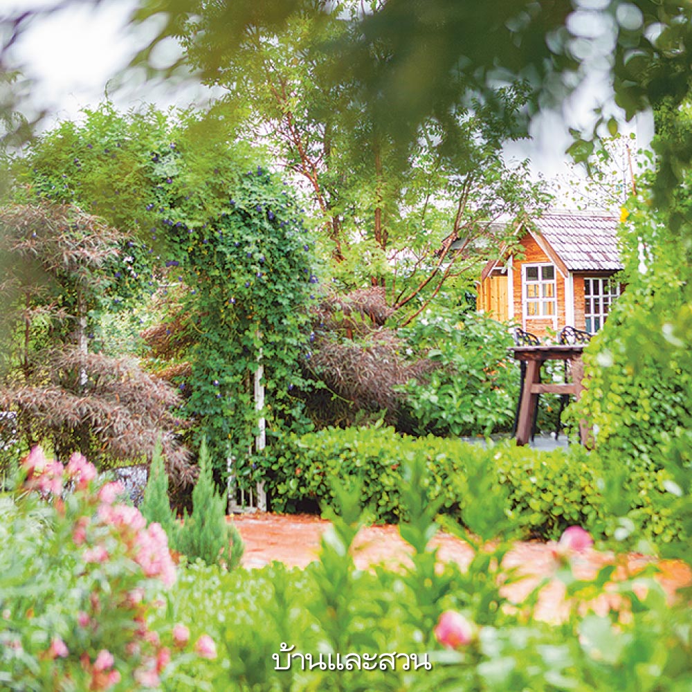“หลังจากเห็นภาพของอาคารคาเฟ่ที่ออกแบบไว้ รวมทั้งที่ได้พูดคุยกัน ก็สรุปได้ว่าภาพรวมของสวนคือมีกลิ่นอายของสวนอังกฤษ แต่ก็มีการผสมผสานสวนสไตล์ทรอปิคัลลงไปด้วย มีลําธาร น้ําตก เพื่อช่วยลดความร้อนในตอนกลางวันตามคําขอของคุณโบว์ แต่เป็นลําธารตื้นๆ ลึกแค่30เซนติเมตร ให้เด็กๆเล่นสนุกและสามารถนั่งเล่นเอาขาจุ่มน้ําได้ ผมตั้งใจจัดให้มีมุมถ่ายรูปกระจายไปทั่วสวน กรณีถ้ามีคนมาใช้บริการเยอะจะได้ไม่ต้องมายืนรอถ่ายรูปนานๆ”