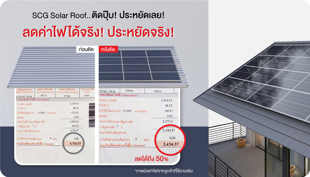 ประหยัดค่าไฟได้สูงสุด 60% ด้วยหลังคาพลังงานสะอาดจาก SCG SolarRoof Solutions
