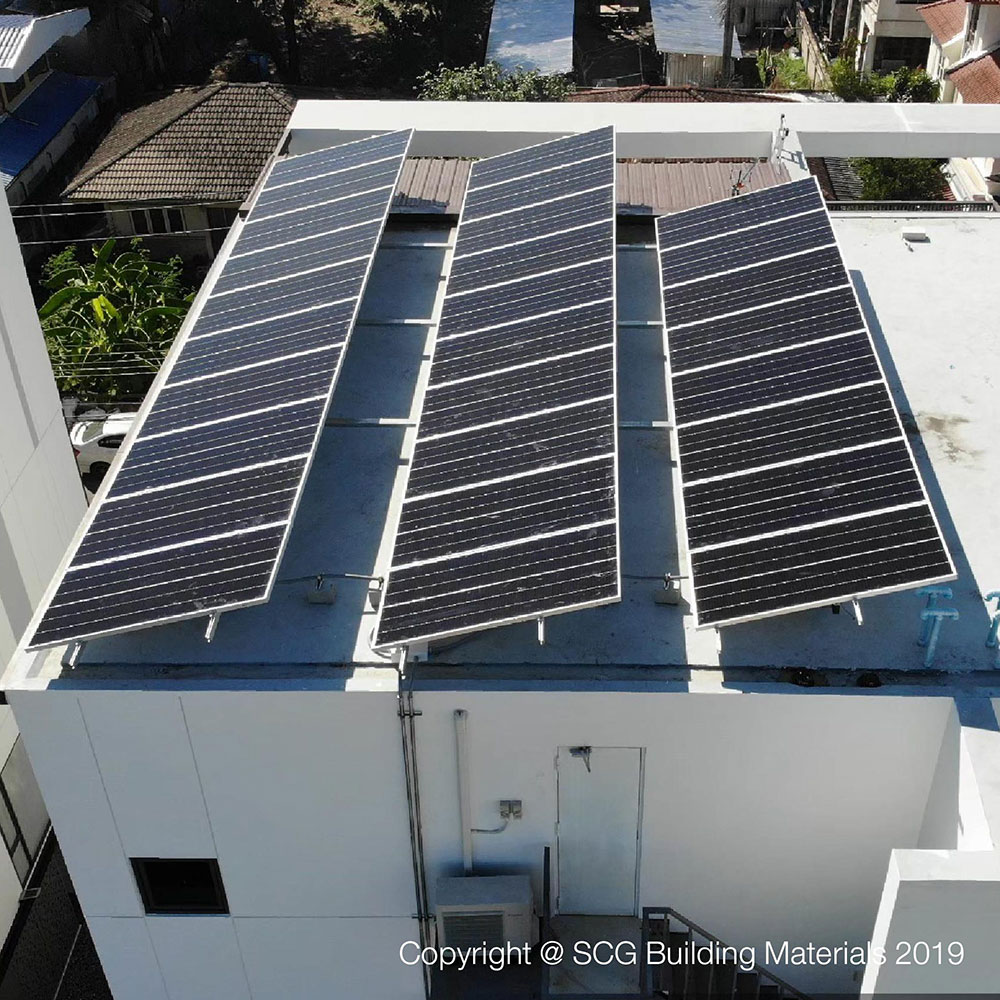 จะหลังคาทรงไหนก็ติดได้จัดมาเลยไม่ว่าบ้านคุณจะเป็นหลังคาทรงจั่ว ปั้นหยา หมาแหงน หรือสแลปก็สามารถติดได้เพราะในฐานะที่ SCG เป็นผู้ผลิตกระเบื้องหลังคามานานกว่า 80 ปี จึงมีความเชี่ยวชาญด้านหลังคาเป็นพิเศษ ได้ออกแบบนวัตกรรมSolar FIX (จดสิทธิบัตรใช้ได้เฉพาะ SCG เท่านั้น) เป็นนวัตกรรมยึดแผงโซลาร์กับผืนหลังคาแบบพิเศษโดยไม่ต้องเจาะกระเบื้อง ช่วยป้องกันปัญหาหลังคารั่วที่จะเกิดขึ้นในอนาคตทำให้เจ้าของบ้านมั่นใจได้ว่าหลังคาบ้านคุณจะไม่รั่วอย่างแน่นอนทั้งยังสามารถติดได้ทั้งบ้านเก่าและบ้านใหม่