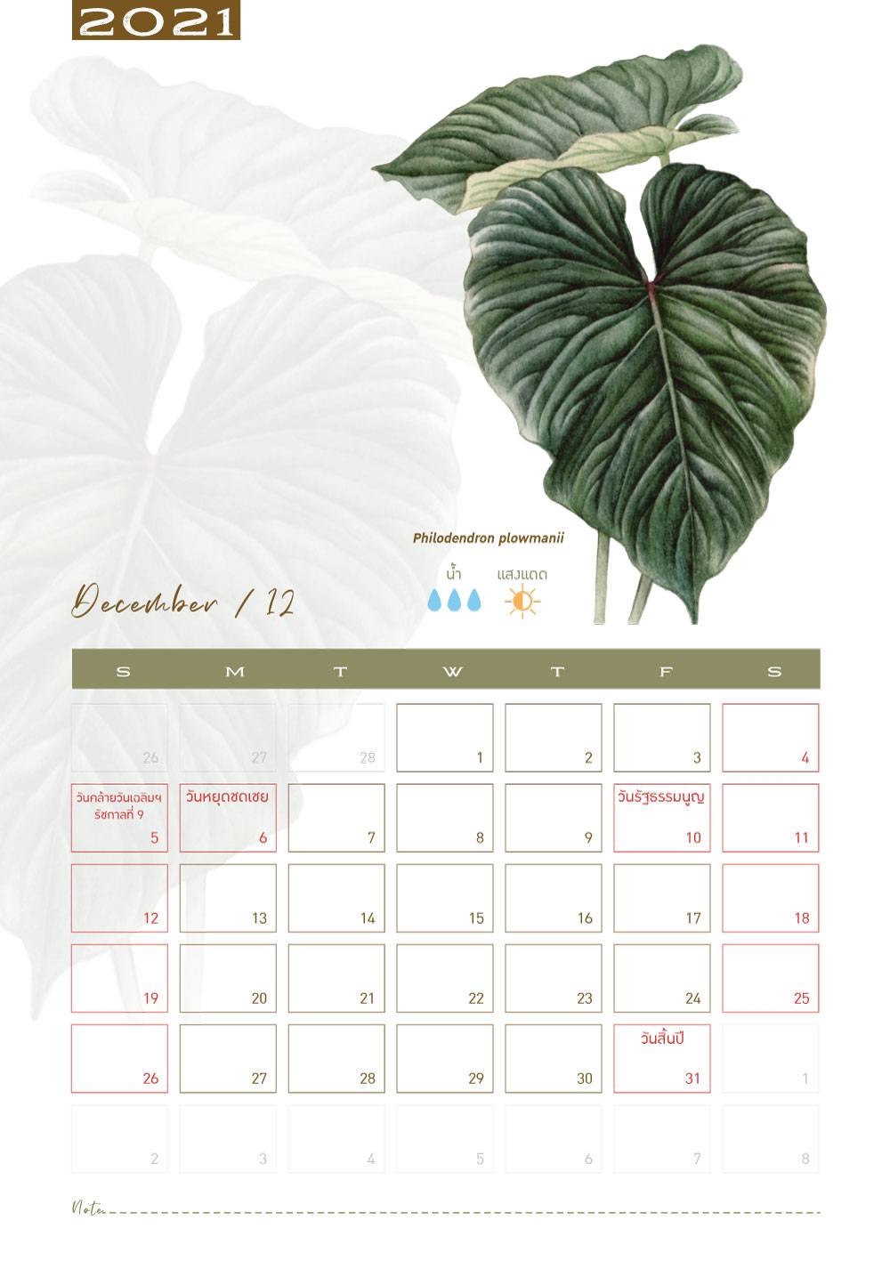 ในปฏิทินของปีนี้จะอัดแน่นไปด้วยภาพไม้ใบสวยๆ ตัวท็อปๆ ทั้ง 12 ต้นเลย ซึ่งนอกจากจะบอกวันที่ วันสำคัญต่างๆ แล้วยังบอกข้อมูลการเลี้ยงไม้ใบนั้นๆ อีกด้วย ทั้งสวยและมีประโยชน์สำหรับคนปลูกต้นไม้ขนาดนี้ ต้องรีบตามไปดาวน์โหลดให้ไว เพราะเราทำมา แจกแบบฟรีๆ จึงขอสงวนสิทธิ์ไม่อนุญาตให้พิมพ์เพื่อจำหน่าย หรือใช้ประโยชน์ทางการค้าใด ๆ ทั้งสิ้นนะคะ