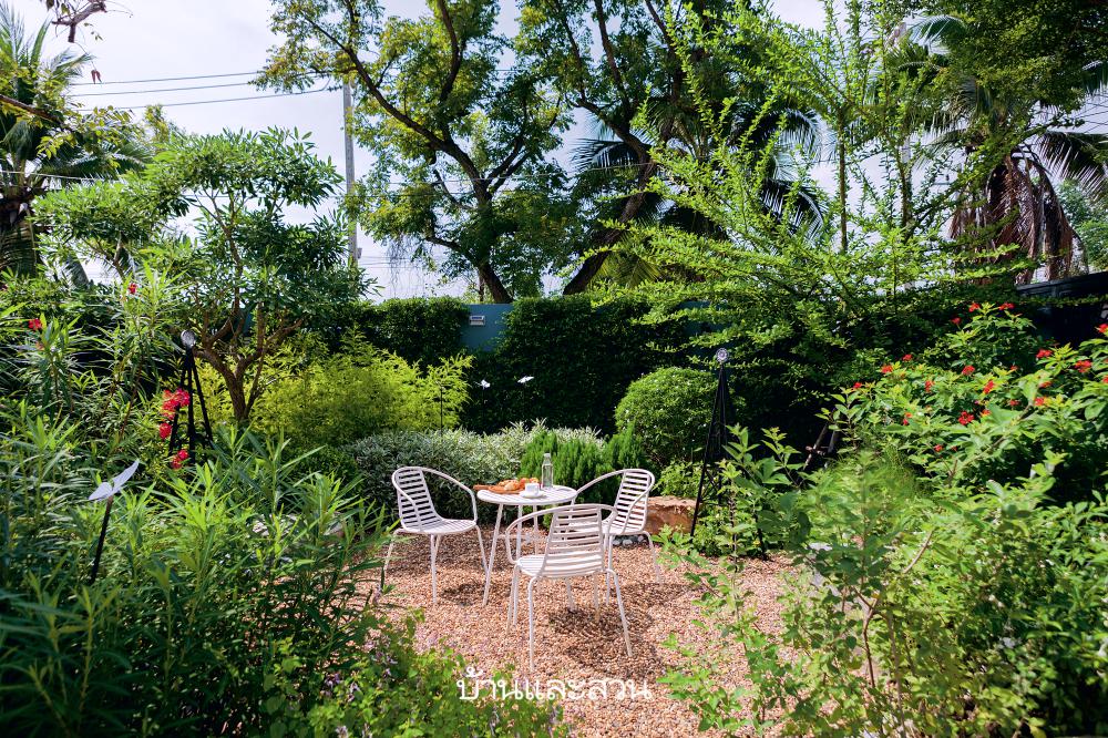 สวนซึ่งเป็นจุดตรงกลางระหว่างเจ้าของสวนคือ คุณวัน-วันทนา กษีรรัตน์ ผู้หลงใหลในไม้ใบ และ คุณเต็นท์-พุทธิพจน์ พงษไพโรจน์ จากTTT Tree Landscape นักจัดสวนน้ำตกหรือสวนป่าสไตล์ทรอปิคัล เพื่อนำธรรมชาติเข้ามาอยู่ใกล้ตัวมากขึ้น เพียงหนึ่งก้าวจากบ้านก็สามารถดื่มด่ำไปกับธรรมชาติที่เป็นเสมือนป่าในเมือง
