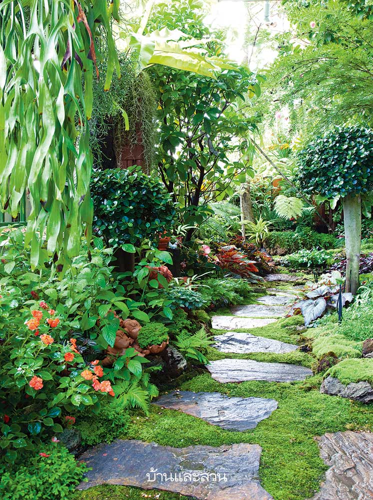 สวนที่เต็มไปด้วยมอสส์สีเขียวสดอ่อนนุ่มเท้าเมื่อค่อยๆ เหยียบลงไปเบาๆ บนพื้นสวนช่าง เป็นความรู้สึกที่พิเศษจริงๆ ค่ะ สำหรับสวนที่ ปลูกมอสส์ และเต็มไปด้วยมอสส์ในทุกมุมอาจไม่ใช่ภาพที่เห็นกันบ่อยนัก เนื่องด้วยการปลูกเลี้ยงมอสส์ให้ได้ผลดีต้องมีการปรับ สภาพแสงและความชื้นสัมพัทธ์ให้เหมาะสม รวมทั้งการเลือกใช้พรรณไม้ ชนิดอื่นๆ ก็ต้องสอดคล้องเข้ากันได้ดีกับสภาพแวดล้อมด้วย