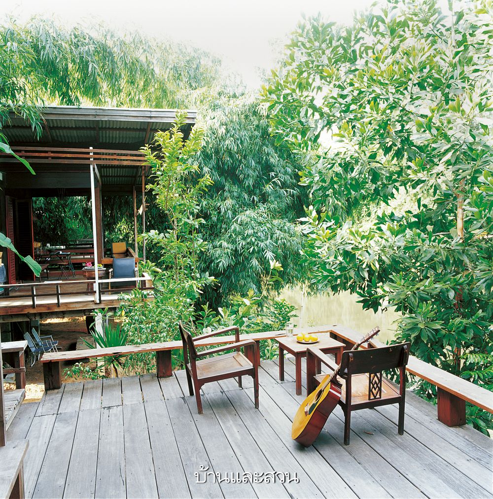 บ้านไม้ชั้นเดียวยกพื้นสูงแสนสงบที่แทรกตัวอยู่กลางธรรมชาติริมฝั่งแม่น้ำนครนายกหลังนี้ เป็นที่พักกายพักใจจากชีวิตวุ่นวายในเมืองหลวง จะมีก็เพียงเสียงของธรรมชาติและสายน้ำที่อยู่เบื้องหน้าเท่านั้นที่เห็นเมื่อไรก็ชวนให้หัวใจรู้สึกสดชื่นรื่นรมย์อยู่เสมอ