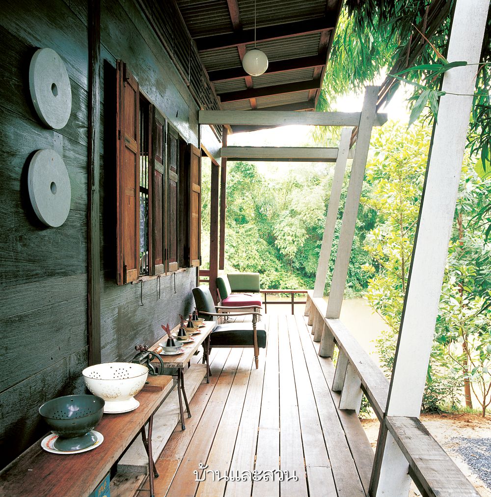บ้านไม้ชั้นเดียวยกพื้นสูง มีพื้นที่ใช้สอยประมาณ 200 ตารางเมตร วางแปลนแบ่งออกเป็นสองส่วน มีระเบียงรอบๆบ้านเพื่อความใกล้ชิดธรรมชาติเรือนหลังแรกใช้เป็นบ้านพักส่วนตัวสำหรับพักผ่อนและใช้เวลาว่างอ่านหนังสือเงียบๆ ส่วนอีกหลังใช้เป็นที่รับรองแขกผู้มาเยือน ต่อเนื่องกับระเบียงกว้างยื่นสู่แม่น้ำใช้เป็นที่สังสรรค์ยามค่ำคืน