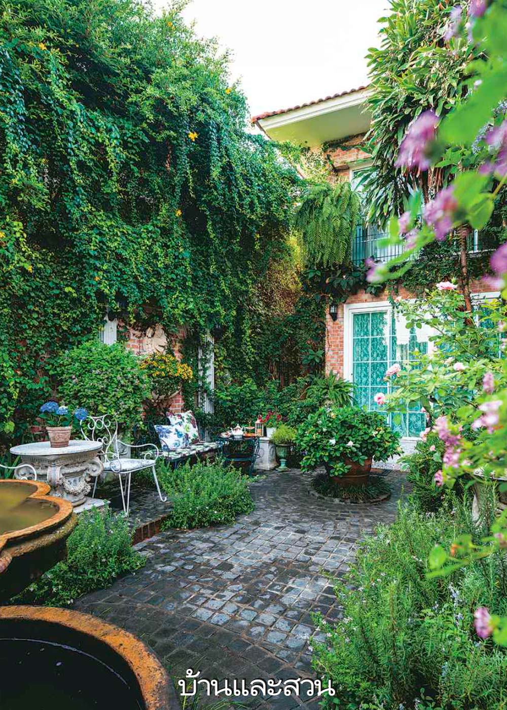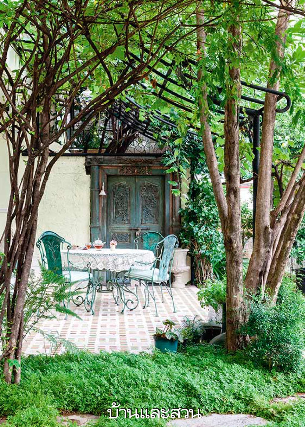 เพราะชื่นชอบสวนและต้นไม้โดยเฉพาะสวนสไตล์อังกฤษที่ประทับใจจากการเดินทางไปที่นั่นหลายครั้ง ทั้งไปทำงาน ท่องเที่ยว และไปเยี่ยมลูกสาวที่เรียนอยู่ โดยระหว่างพักอยู่ที่นั่นก็มักจะไปเดินเล่นตามสวนต่างๆ เสมอ ทำให้ คุณจั๊ม -ปราณี ชาญศิริวงศ์ เจ้าของบ้านย่านห้วยขวางหลังนี้ตั้งใจจัดสวนอังกฤษตั้งแต่ซื้อบ้านมาใหม่ๆเมื่อหลายปีก่อน เพราะอยากดูแลต้นไม้เอง รวมทั้งยังได้คอยสังเกตและเรียนรู้ไปกับต้นไม้อีกด้วย ภายในสวนที่จัดไว้อย่างเหมาะเจาะลงตัวกลายเป็นมุมที่ออกมาเดินเล่นและนั่งพักผ่อนสบายๆ มีร่มเงาต้นไม้ใหญ่แสนร่มรื่นเปลี่ยนภาพสวนอังกฤษเดิมที่ดูแลยากเป็นสวนแบบอิงลิชโมเดิร์นที่ผสมผสานความหวานและความทันสมัยเข้าด้วยกันอย่างลงตัว >>> อ่านเพิ่มเติมได้ที่