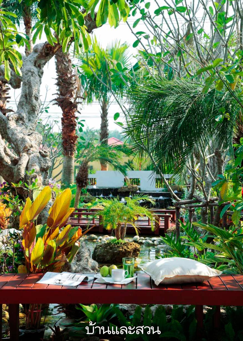 ท่ามกลางบรรยากาศธรรมชาติที่เงียบสงบของอำเภอกระทุ่มแบน จังหวัดสมุทรสาคร บ้านสไตล์โมเดิร์นหลังใหญ่ที่เรามาเยือนนี้มีพื้นที่กว้างขวางต่างไปจากบ้านในละแวกเดียวกัน เมื่อผ่านประตูรั้วเข้ามาในบริเวณบ้าน ฝั่งซ้ายเป็นสนามหญ้ากว้างสบายตา ฝั่งขวาเป็นสวนหย่อมที่ดูร่มรื่น เเต่ก็อดแปลกใจไม่ได้ว่าทำไมพื้นที่จัดสวนถึงมีไม่มากนัก กระทั่งเราเดินเข้าไปทักทายเจ้าของบ้าน คุณนุช – ชยพล ธรรมสังวาล ซึ่งนั่งอยู่ริมสระว่ายน้ำ จึงได้เห็นสวนขนาดใหญ่ที่ซ่อนอยู่ด้านหลังบ้านนี่เอง >>>อ่านเพิ่มเติมได้ที่นี่