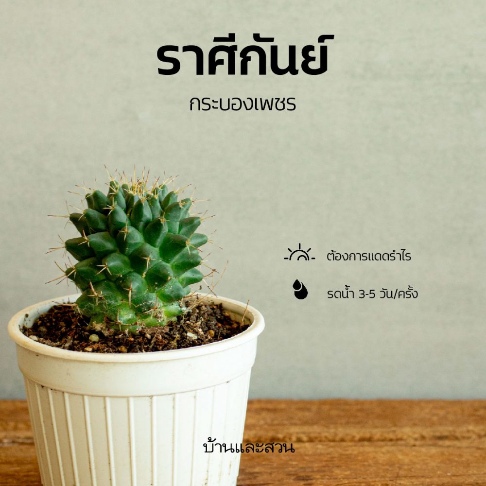 ชาวราศีกันย์ เป็นคนที่เก่งด้านการจัดการ ชอบเก็บหอมรอมริบ มีความตั้งใจสูง ชอบหาความรู้ ชอบเป็นที่พึ่ง รับฟังคนอื่นอยู่เสมอ จึงเหมาะสม “ต้นกระบองเพชร” พืชที่มีแหล่งกำเนิดในทะเลทราย มีความเชื่อกันว่าเป็นต้นไม้ที่นำโชคทางด้านการงานและการเงิน หากบ้านไหนเลี้ยงต้นกระบองเพชรได้สวยงาม ออกดอก บ้านนั้นจะมีโชคลาภ