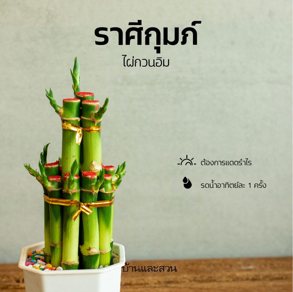 ชาวราศีกุมภ์ มักเป็นคนที่สุขุมนุ่มลึก ไม่ค่อยทำอะไรสะเพร่า ทั้งเด็ดเดี่ยวและไม่ท้อแท้ จึงเหมาะกับ “ไผ่กวนอิม” เพราะมีความเชื่อว่าจะช่วยดึงดูดความสงบและความเฉลียวฉลาดในตัวผู้ปลูก และยังเป็นไม้มงคลเสริมฮวงจุ้ย หมายถึงพระโพธิสัตว์กวนอิม นิยมปลูกประดับในอาคาร